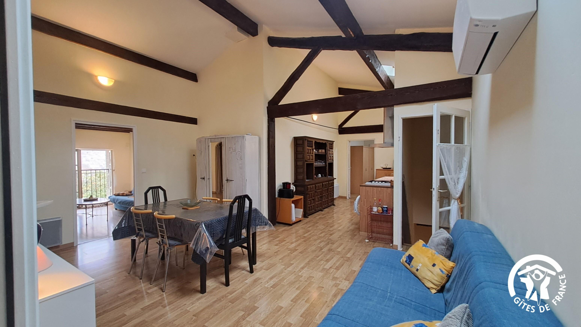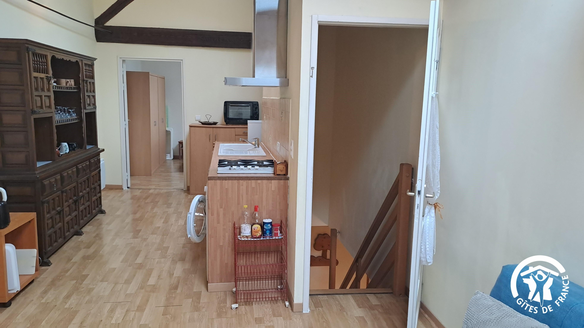 A l’étage d’une ancienne grange, dans un petit hameau typique du pays gaillacois. Accès depuis la terrasse couverte séparant le gîte du domicile du propriétaire. Le gîte est situé au premier avec un accès par un escalier à l’intérieur du gîte.