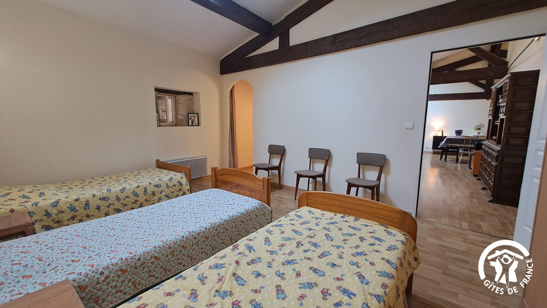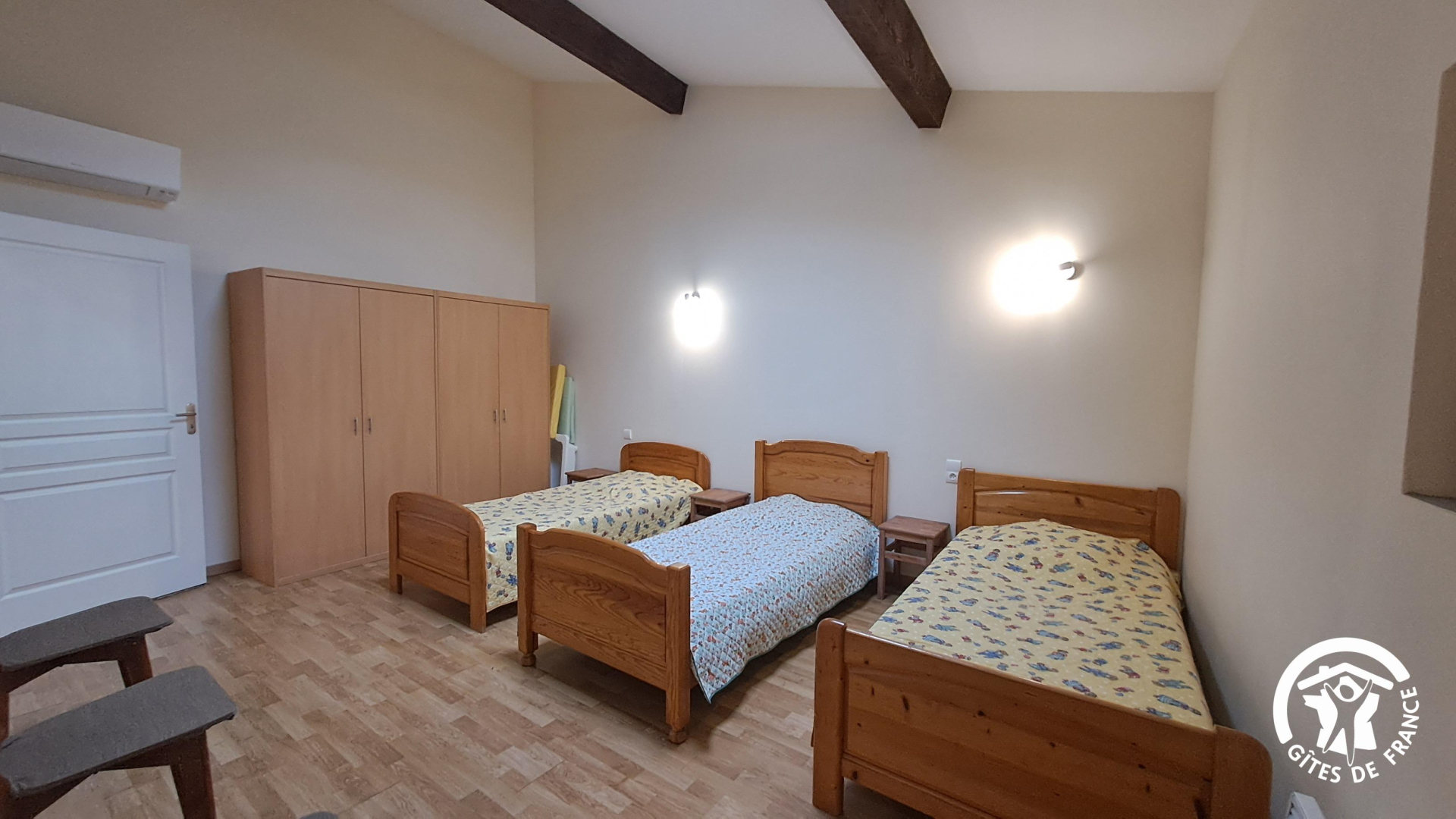 – Une troisième chambre avec trois lits en 90x190cm et une salle d’eau attenante avec douche et wc.