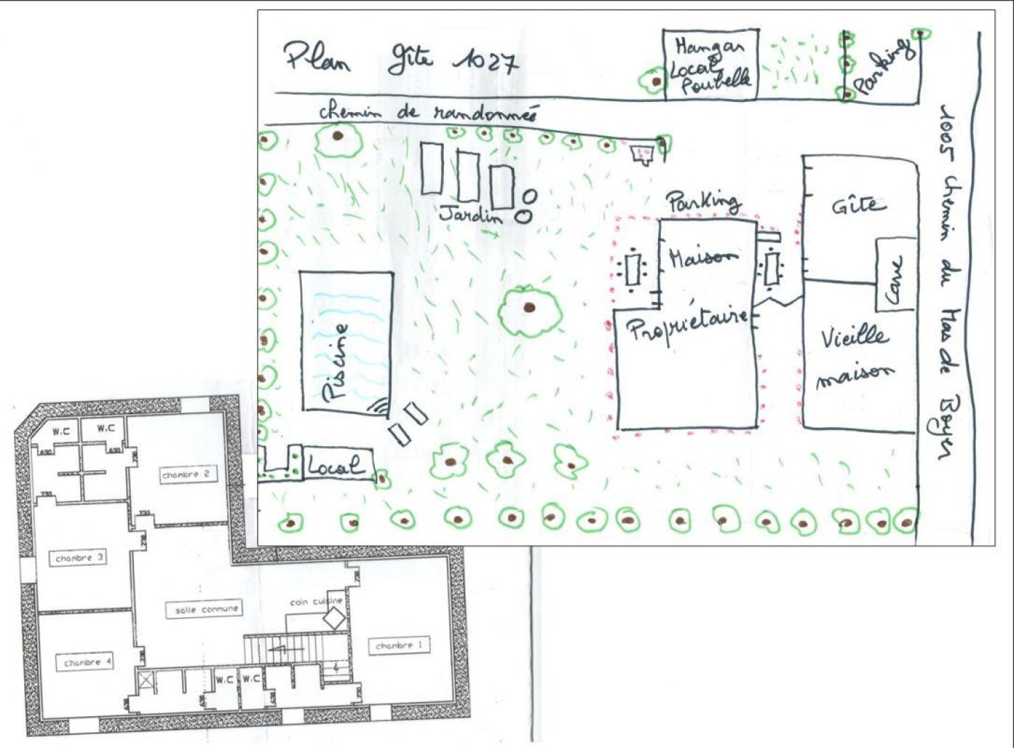 A l’extérieur, piscine à partager avec les propriétaires, terrasse, coin jardin. Parking devant le gîte.