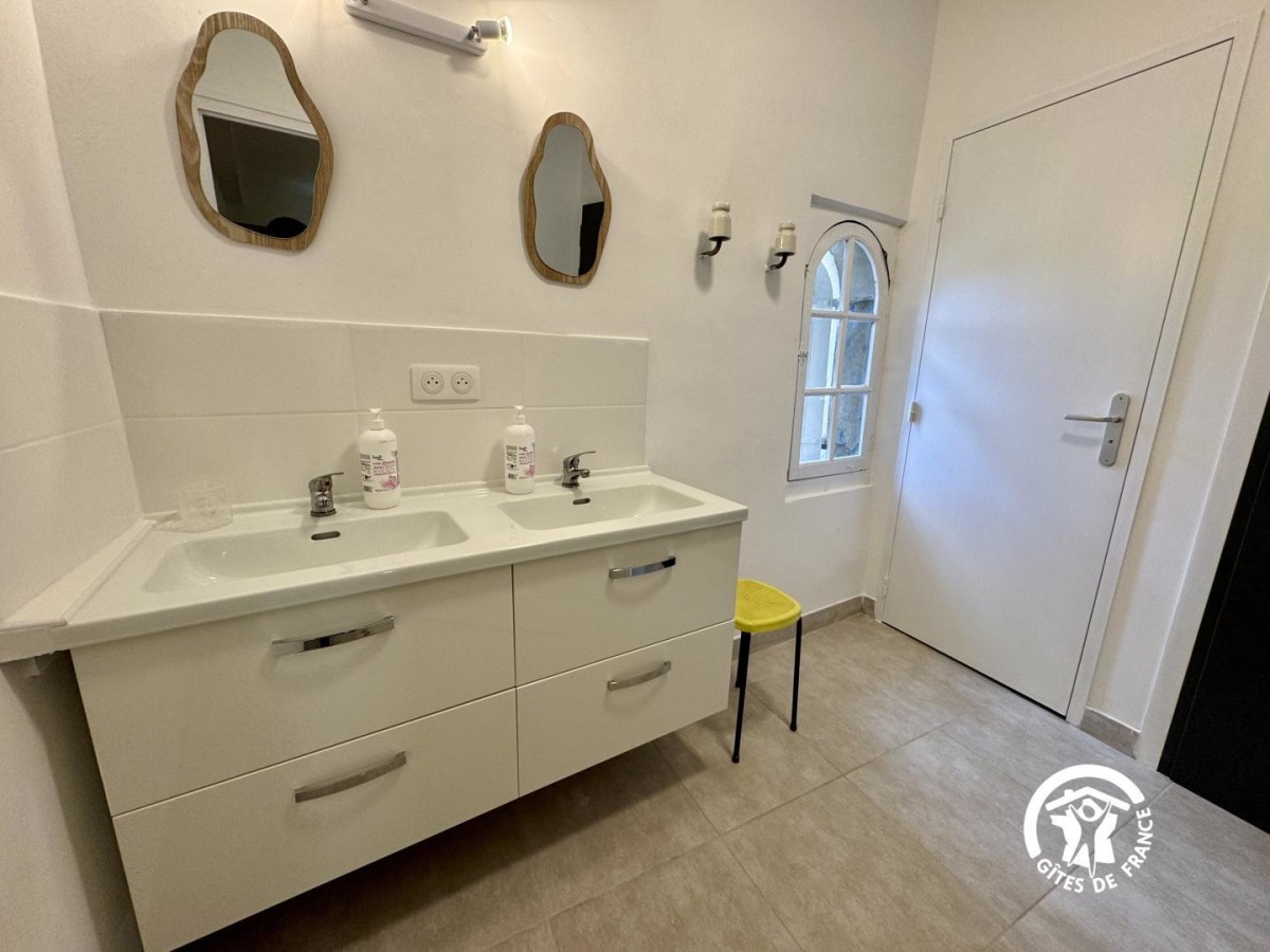 Entièrement rénové en 2020 dans le respect de son architecture de ferme fortifiée réaménagée aux fils des siècles, il est le seul établissement classé ERP 3 en Occitanie. Au milieu des pins, des cyprès, des vignes et des oliviers, vous serez à l’écart de toute agitation et en toute tranquillité. L’équipe du domaine, qui habite sur place, se tient à votre disposition pour faire de votre réception un moment inoubliable. Elle dispose également d’une grande piscine privative rien que pour vous (16x8x2,20). Le domaine est bien situé pour visiter de nombreux lieux à proximité (Cité de Carcassonne, le Gouffre de Cabrespine ou Minerve et Lagrasse). Maison mitoyenne aux propriétaires. Accès au gîte par un espace indépendant qui mène au 1er étage, sur ce même niveau il comprend: – Séjour-cuisine (micro-ondes, 2 plaques, cafetière expresso) – Salle d’eau indépendante : 2 douches, double-vasque, WC – Chambre 1 : deux lits 120x190cm. – Chambre 2 : 8 lits 90x190cm superposés. – Chambre 3 : 8m2 : lit 140x190cm + lit enfant – Chambre 4 : 12m2 : lit 140x190cm – Salle de bain indépendante : baignoire, double-vasque. – Wc indépendant.