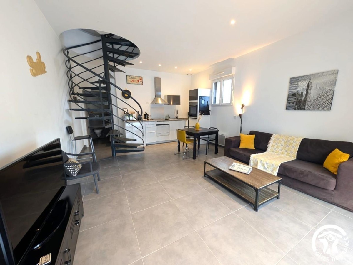 À Frontignan, le gîte Léon vous accueille au sein d’une propriété viticole de 14 hectares. Entre la mer Méditerranée et les reliefs de la Gardiole, vous profiterez d’un environnement naturel privilégié. Vous séjournerez non loin des sept kilomètres de plage de Frontignan-Plage, un lieu apprécié pour ses eaux calmes et son atmosphère préservée. À quelques minutes, Sète dévoile le caractère unique du Mont Saint-Clair, les saveurs des Halles, la vitalité de son port et les soirées animées du Théâtre de la Mer. Montpellier, l’étang de Thau, la cathédrale de Maguelone ou encore les villages emblématiques tels que Pézenas ou Saint-Guilhem-le-Désert complètent agréablement les découvertes possibles. Le gîte, ainsi que trois autres gîtes, est aménagé au sein d’un ancien bâtiment vigneron rénové. Le rez-de-chaussée du gîte se compose d’une pièce à vivre moderne et confortable, réunissant un salon avec canapé et télévision, une table à manger et une cuisine ouverte très bien équipée (four, micro-ondes, petit lave-vaisselle, réfrigérateur, congélateur, cafetières à filtre et italienne), ainsi qu’un WC indépendant. À l’étage, vous trouverez une salle d’eau avec WC, douche et vasque avec miroir, et une chambres lumineuse climatisée avec un lit double 160x200cm et un lit simple 90x190cm. Vous bénéficiez également d’espaces extérieurs soignés : terrasse privative avec salon de jardin, grand espace vert partagé, et piscine extérieure commune. Le domaine propose aussi un espace ping-pong, un barbecue partagé et un parking privatif sécurisé à l’intérieur de la propriété. A noter pour les animaux, le domaine est ouvert sur les vignes et d’autres animaux sont présents sur le domaine (poules, ânesse, brebis, chiens, chats…). Promotion cure 3 semaines : Très basse, basse et moyenne saison : -15%