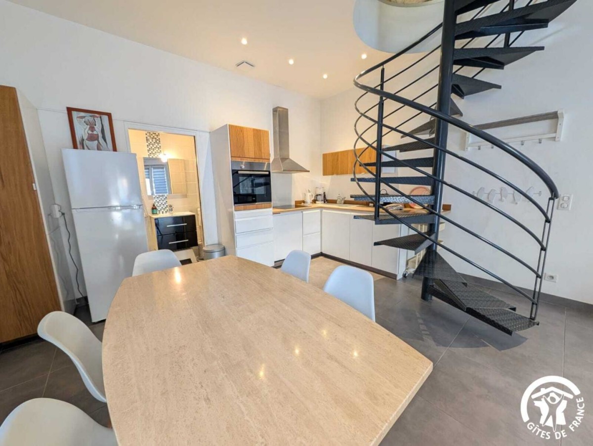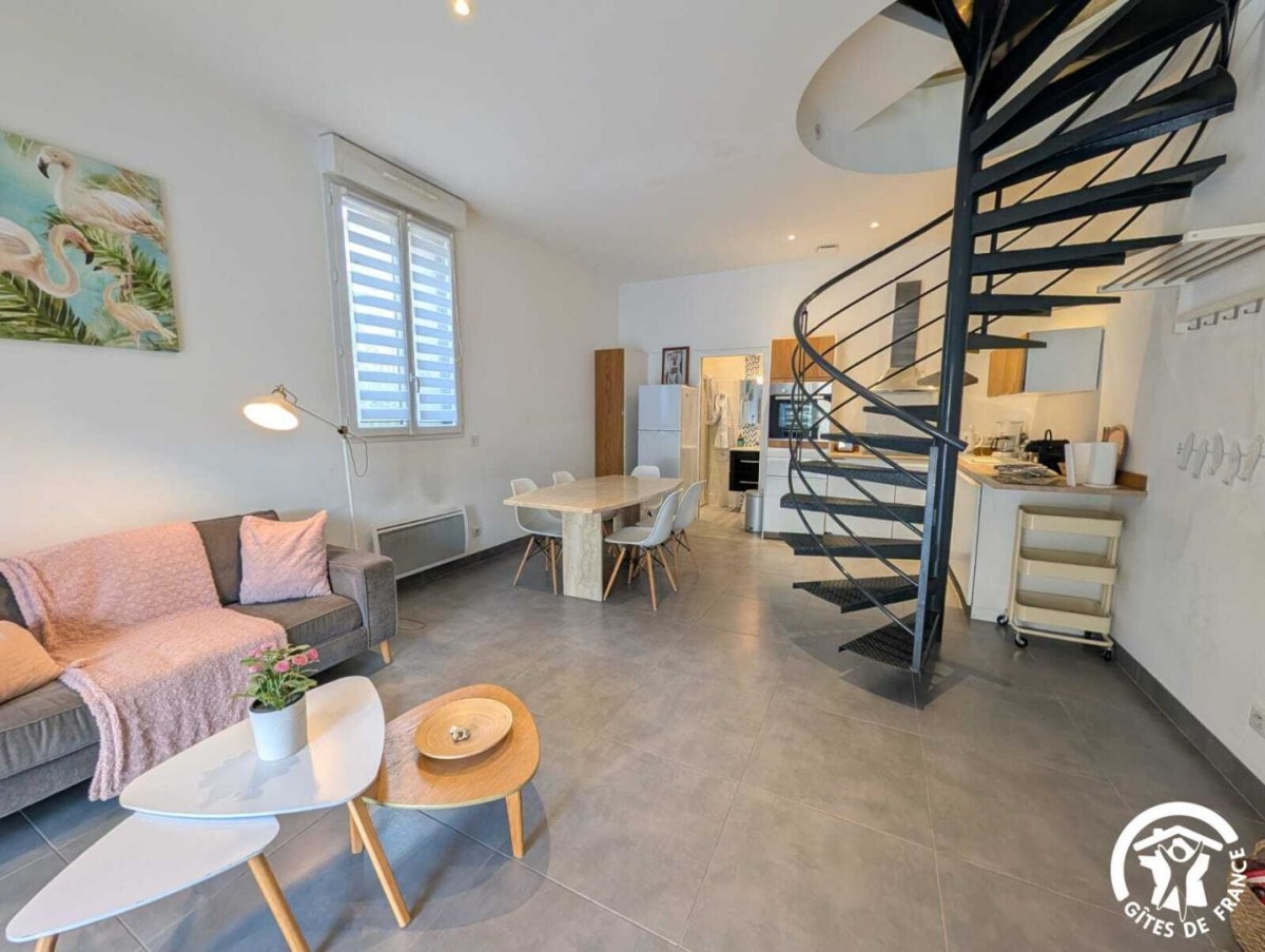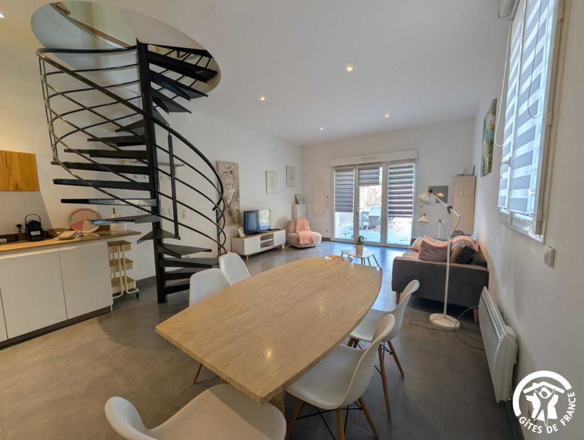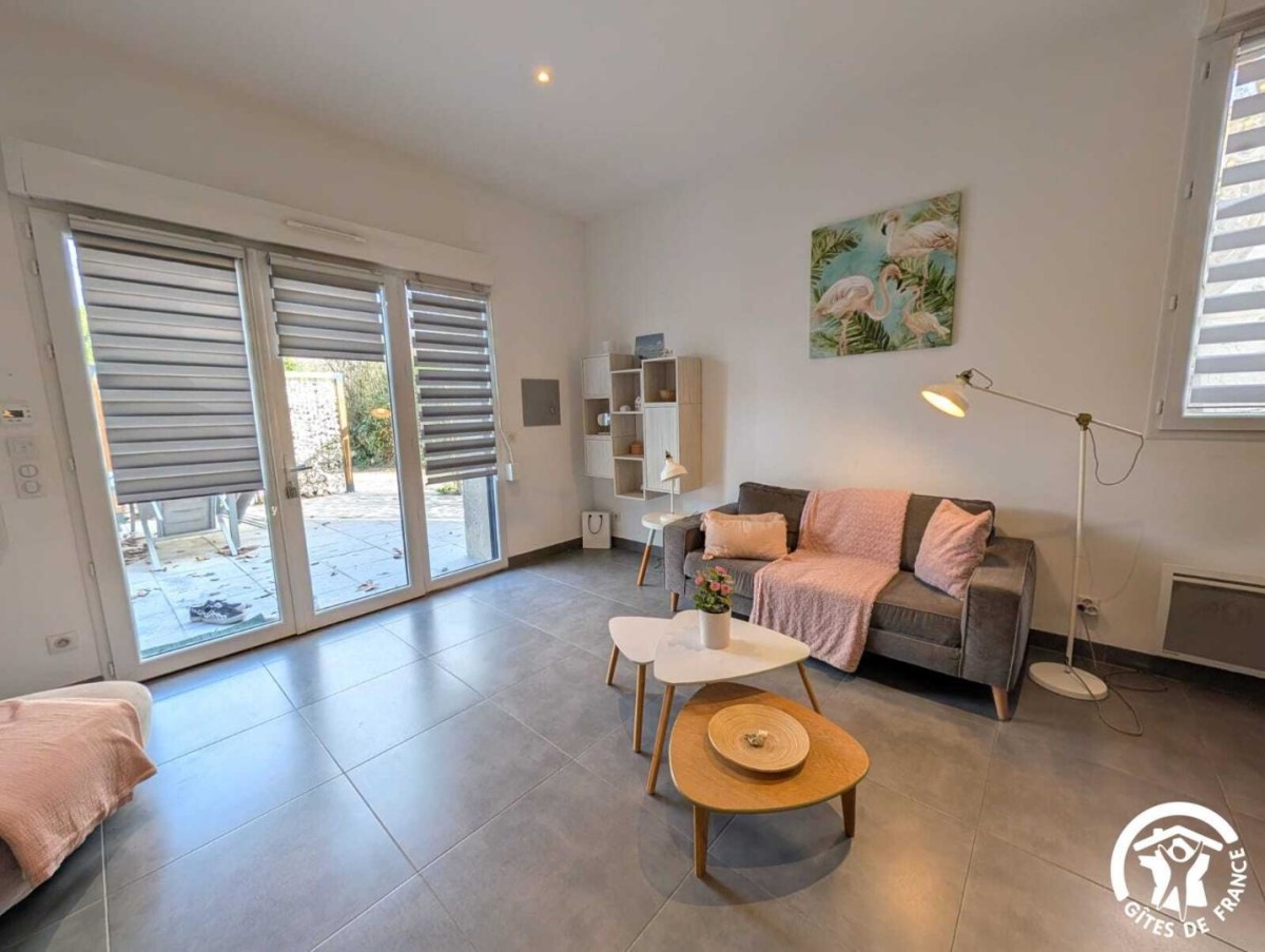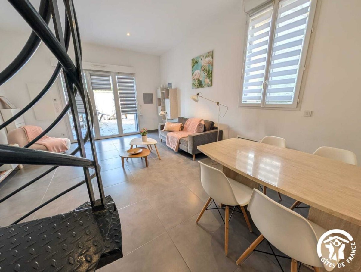 À Frontignan, le gîte Lila vous accueille au sein d’une propriété viticole de 14 hectares. Entre la mer Méditerranée et les reliefs de la Gardiole, vous profiterez d’un environnement naturel privilégié. Vous séjournerez non loin des sept kilomètres de plage de Frontignan-Plage, un lieu apprécié pour ses eaux calmes et son atmosphère préservée. À quelques minutes, Sète dévoile le caractère unique du Mont Saint-Clair, les saveurs des Halles, la vitalité de son port et les soirées animées du Théâtre de la Mer. Montpellier, l’étang de Thau, la cathédrale de Maguelone ou encore les villages emblématiques tels que Pézenas ou Saint-Guilhem-le-Désert complètent agréablement les découvertes possibles. Le gîte, ainsi que trois autres gîtes, est aménagé au sein d’un ancien bâtiment vigneron rénové. Le rez-de-chaussée du gîte se compose d’une pièce à vivre moderne et confortable, réunissant un salon avec télévision, un espace repas et une cuisine ouverte très bien équipée (four, micro-ondes, lave-vaisselle, réfrigérateur, congélateur, cafetières à filtre et italienne). Une première salle d’eau avec douche, WC et vasque vient compléter ce niveau. À l’étage, vous trouverez une seconde salle d’eau avec WC et deux chambres lumineuses : • Chambre 1 : 1 lit 160×200 (séparable en deux lits simples) et 1 lit 90×190 • Chambre 2 : 1 lit 140×190 Une climatisation installée sur le palier rafraîchit l’étage. Vous bénéficiez également d’espaces extérieurs soignés : terrasse privative avec salon de jardin, grand espace vert partagé, et piscine extérieure commune. Le domaine propose aussi un espace ping-pong, un barbecue partagé et un parking privatif sécurisé à l’intérieur de la propriété. A noter pour les animaux, le domaine est ouvert sur les vignes et d’autres animaux sont présents sur le domaine (poules, ânesse, brebis, chiens, chats…). Promotion cure 3 semaines : Très basse, basse et moyenne saison : -15%.