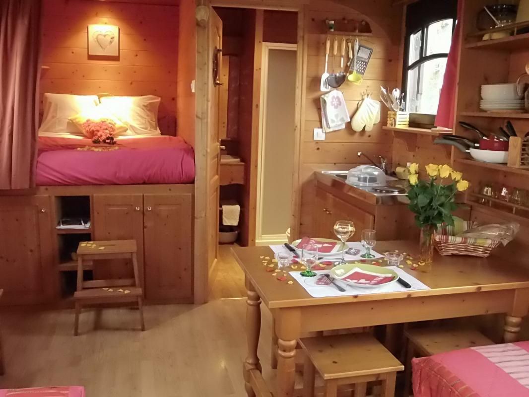 Faites-vous plaisir et rentrez dans l’intimité de votre roulotte, vous serez surpris par son confort inattendu et par son atmosphère coloré et magique. Votre séjour sera alors l’occasion de profiter de ce cadre enchanteur où vous pourrez vous relaxer et jouir d’un panorama unique sur toute la vallée. La roulotte, hébergement insolite et habitable toute l’année vous fait bénéficier des services tels que : lits faits à votre arrivée, chauffage ou climatisation selon la saison et ménage final fait par nos soins offert. Service petit-déjeuner et diners à la demande et sur réservation . Sur place, piscine (profondeur 1.5m) sécurisée par une clôture et nettoyé et contrôlé tous les matins pendant la saison, salle commune avec jeux de société, bibliothèque, TV et Wifi à votre disposition . Aire de jeux, trampoline, … Partez l’esprit serein pour un séjour au calme. Dépaysement garanti.