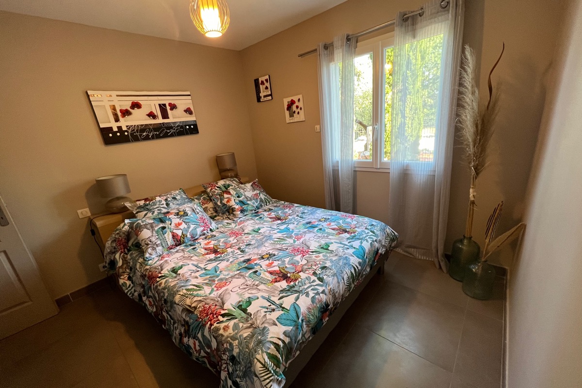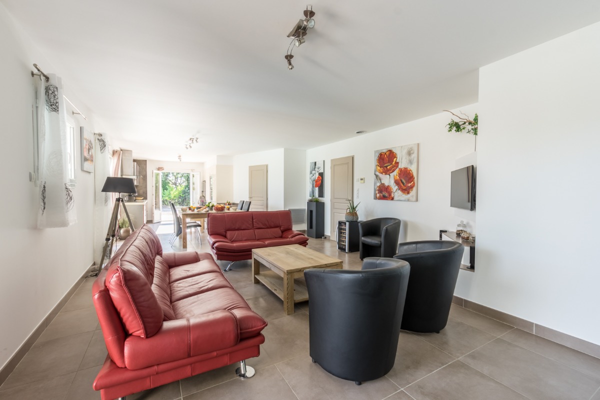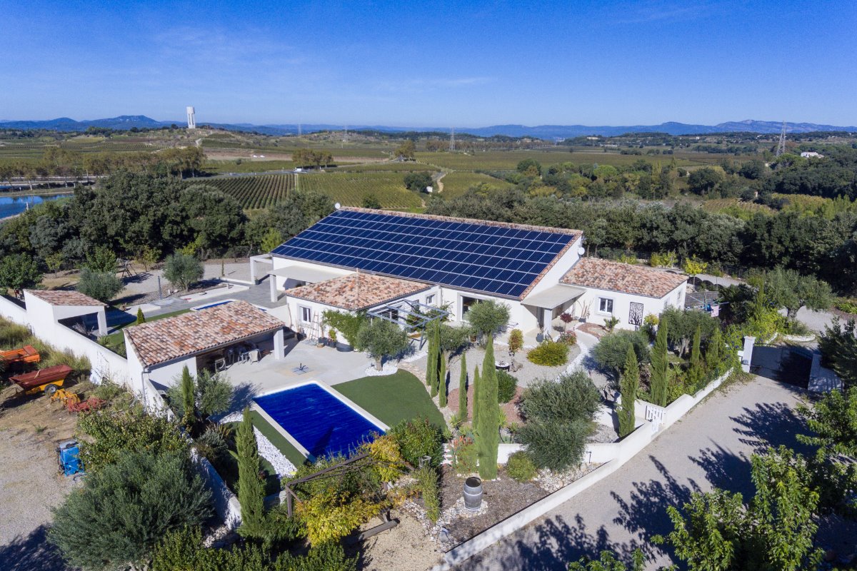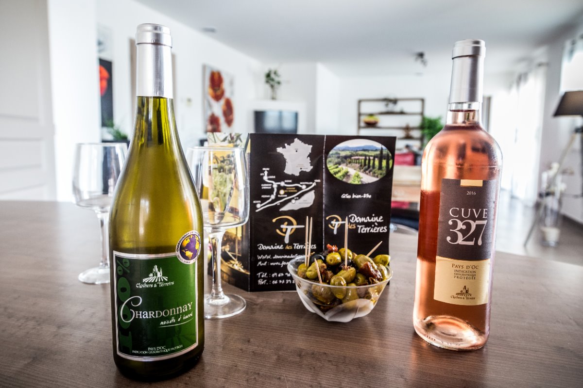 Bienvenue chez vous! Le domaine des TERRIÈRES vous ouvre les portes d’un petit coin de paradis, propice à la douceur de vivre , un havre de paix de 17 ha au cœur du vignoble verdoyant du Languedoc. La Sérannne, Villa pour 8 pers., récente est très confortable, climatisée et décorée de façon moderne et chaleureuse où vous pourrez vous détendre après une journée passée au bord de la piscine ou en balade. Vous disposer de grands terrains aménagés où les enfants peuvent jouer en toute tranquillité pour leur plus grand bonheur. Les grandes baies vitrée qui mènent aux terrasses couvertes ou baignées de soleil sont une invitation à la détente et aux repas en famille face aux jardins et pelouses. Un barbecue prêt pour les grillades et un bar pour vous désaltérer après une partie de pétanque sont au rendez vous ! Dégustez une bonne tomate tout juste cueillit dans notre potager bio ! A la nuit tombée, l’éclairage sous marin donnera de la douceur à vos soirées. La cuisine ouverte sur le séjour est entièrement équipée avec tout le nécessaire pour huit personnes. La partie nuit dispose de quatre chambres décorées avec raffinement, deux salles d’eau, dont une attenante à la chambre parentale. Toilettes séparées. La possibilité de garer les voitures ou motos en toute sécurité sur la propriété. Partez à la rencontre avec nos animaux : poules, chèvres, chevaux….etc. Possibilité de : – Dégustation de vins avec le propriétaire, visite de ses caves, participation aux vendanges. – Soins de relaxation ou de beauté sur réservation dans les vignes ou dans une pièce dédiée sur le domaine. Tout un programme qui vous attend !