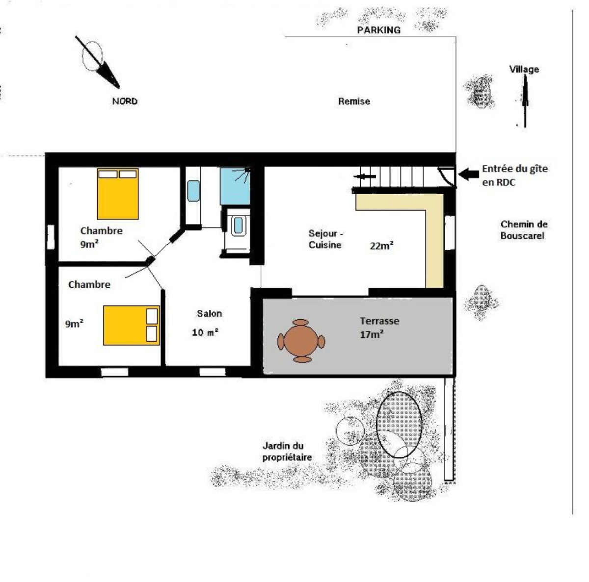 Vous pourrez profiter tout au long de l’année des dégustations de vin mises en place le Château de Paraza. De plus, vous êtes idéalement situé pour profiter des nombreux attraits que possède la région: La Cité Médiévale de Carcassonne, les plages du littoral méditérrannéen, Narbonne, Le Parc Naturel du Haut Languedoc et tant d’autres. Sur place, le gîte est situé à l’intérieur d’un domaine viticole dont les propriétaires vous feront découvrir leur métier. Stationnement à disposition. le gîte se situe au dessus d’un garage, avec un escalier avec entrée indépendante depuis la rue pour y accéder. Une jolie de terrasse de 17 m2 est à votre disposition avec un salon de jardin donnant sur une cour calme. Composition du gîte: Séjour-cuisine climatisé, donnant sur la terrasse, salon. 2 chambres avec 2 lits en 140. Salle d’eau. WC indépendant. Climatisation et chauffage en supplément dans le gîte.