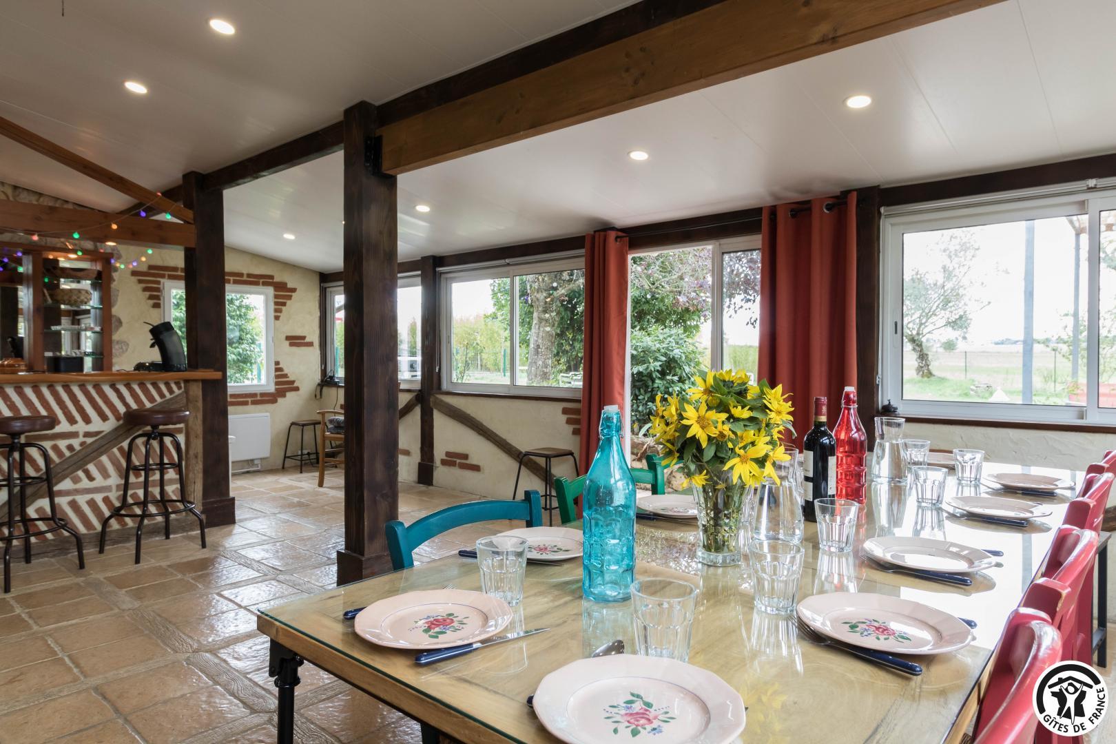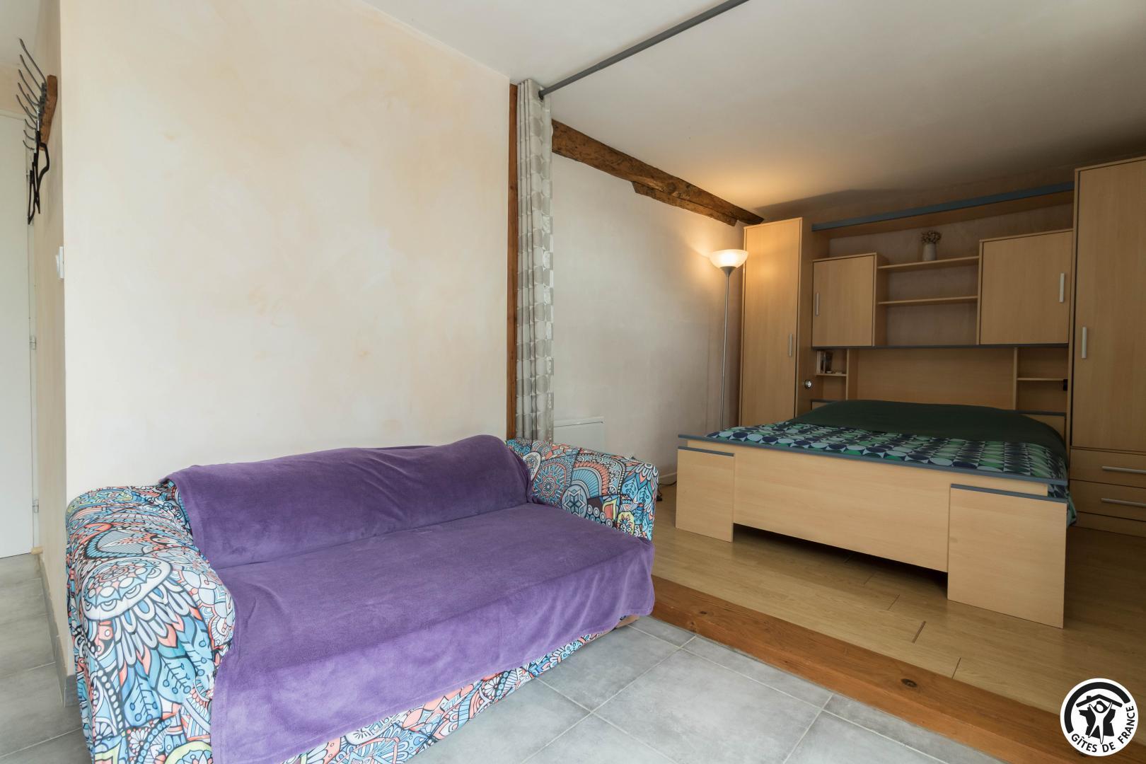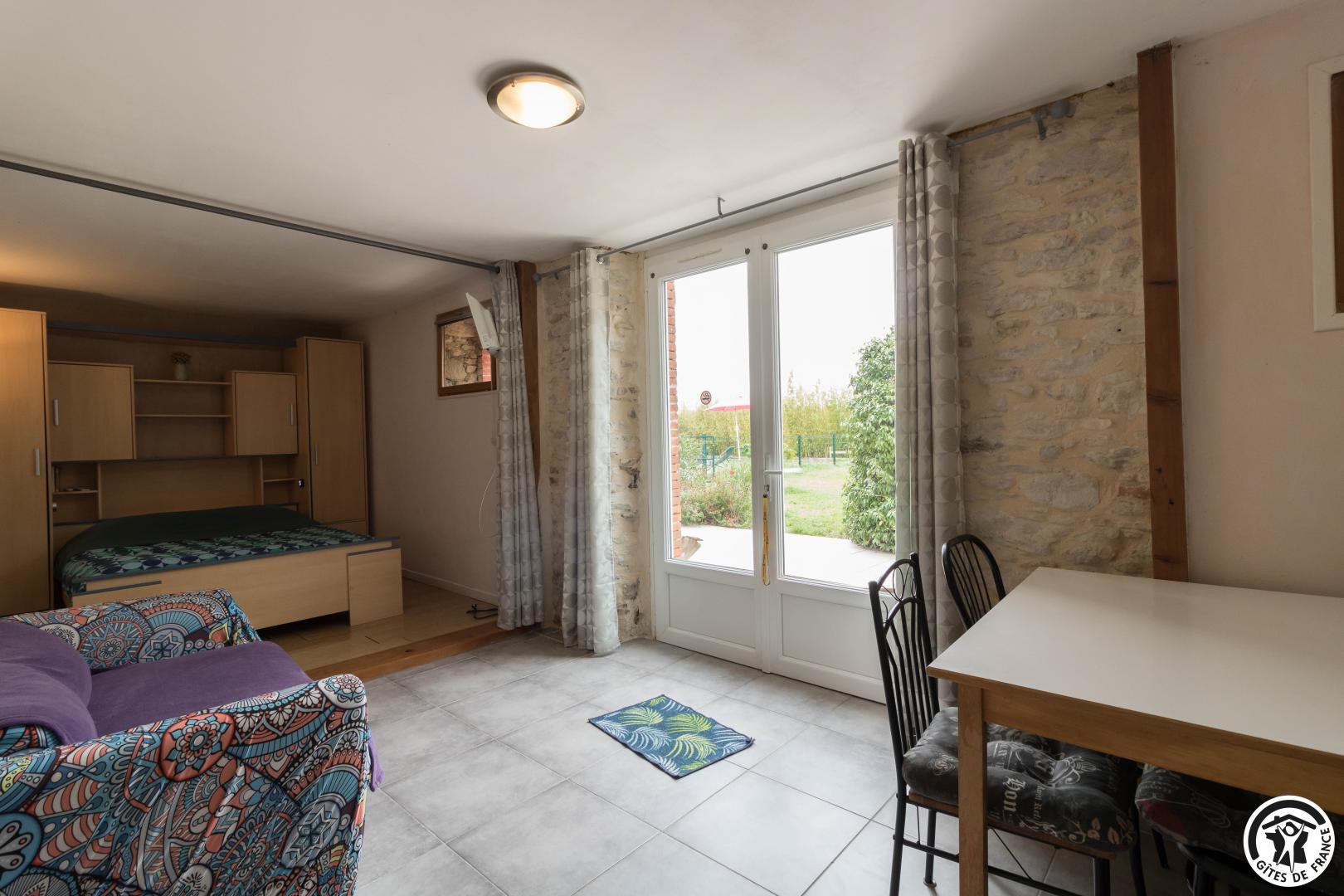 Le gîte comprend un logement principal et un studio mitoyen (nécessité de sortir sur la terrasse pour passer de l’un à l’autre).