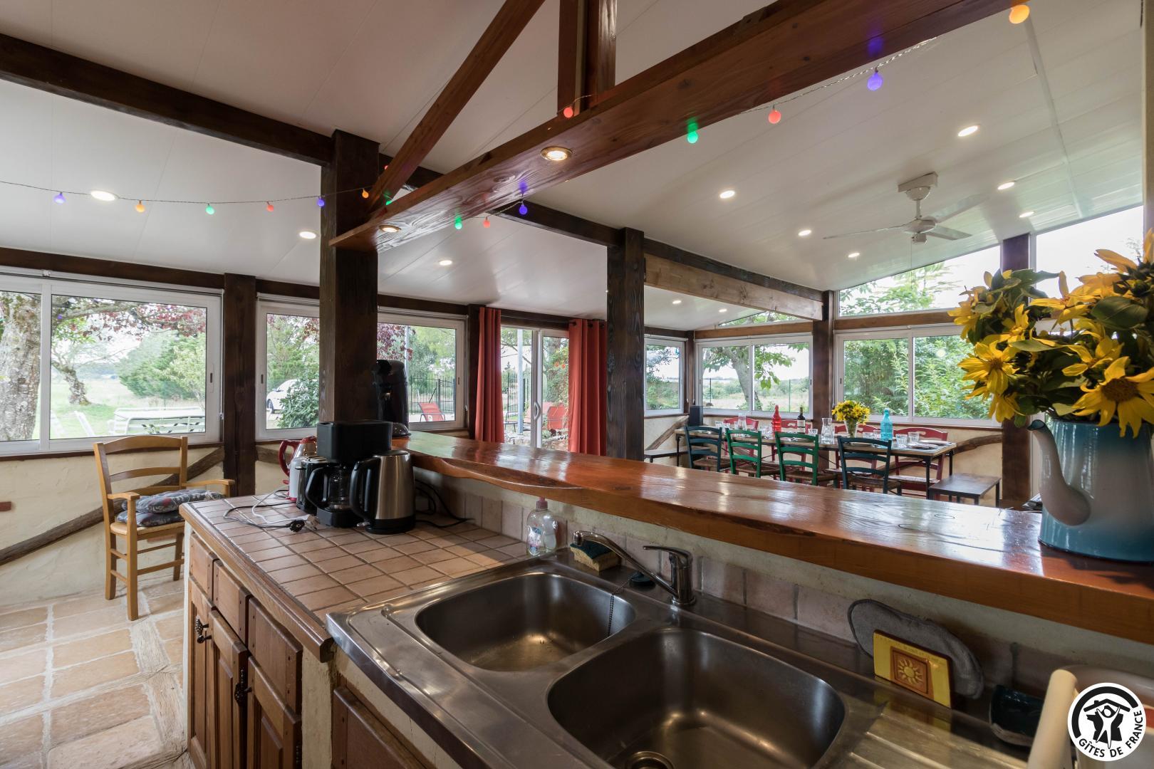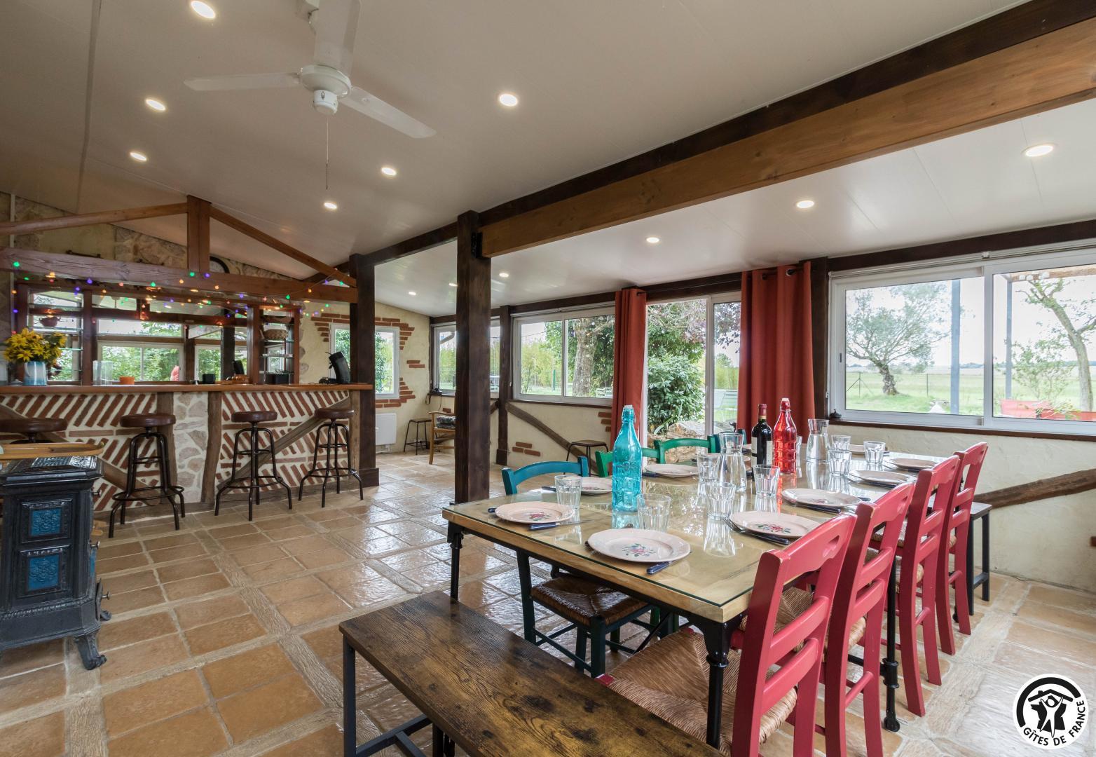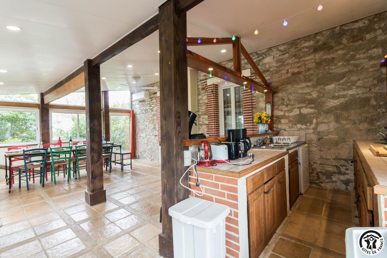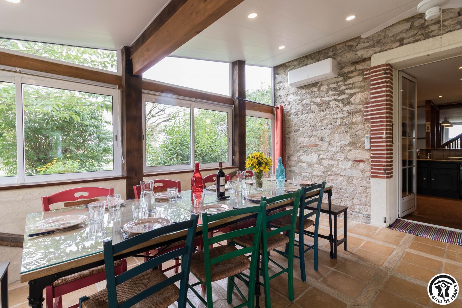 Le gîte comprend un logement principal et un studio mitoyen (nécessité de sortir sur la terrasse pour passer de l’un à l’autre).