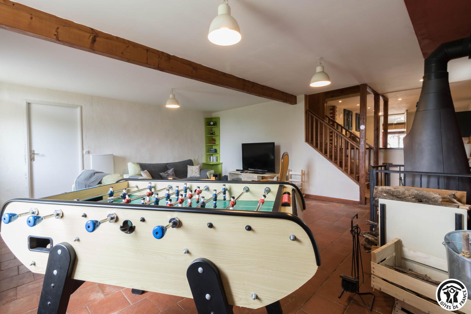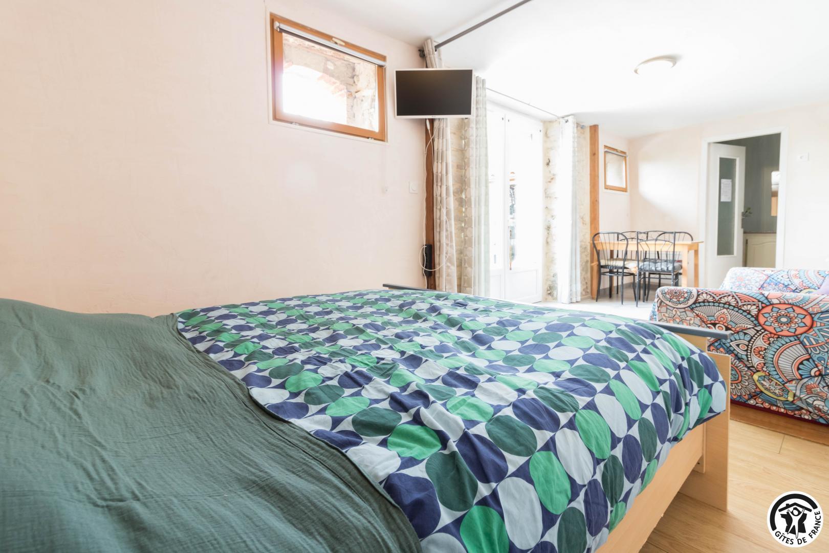 Le studio, en rez de jardin, complète la capacité de couchage avec 1 lit 2 personnes en 140, salle d’eau avec WC séparé. Boulodrome, portique, ping-pong et baby-foot. Jardin clos, piscine et bain nordique privatifs. Parking est aménagé sur la propriété.