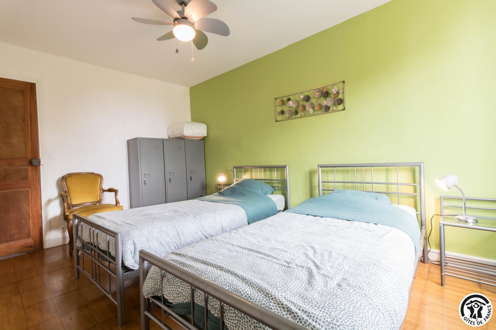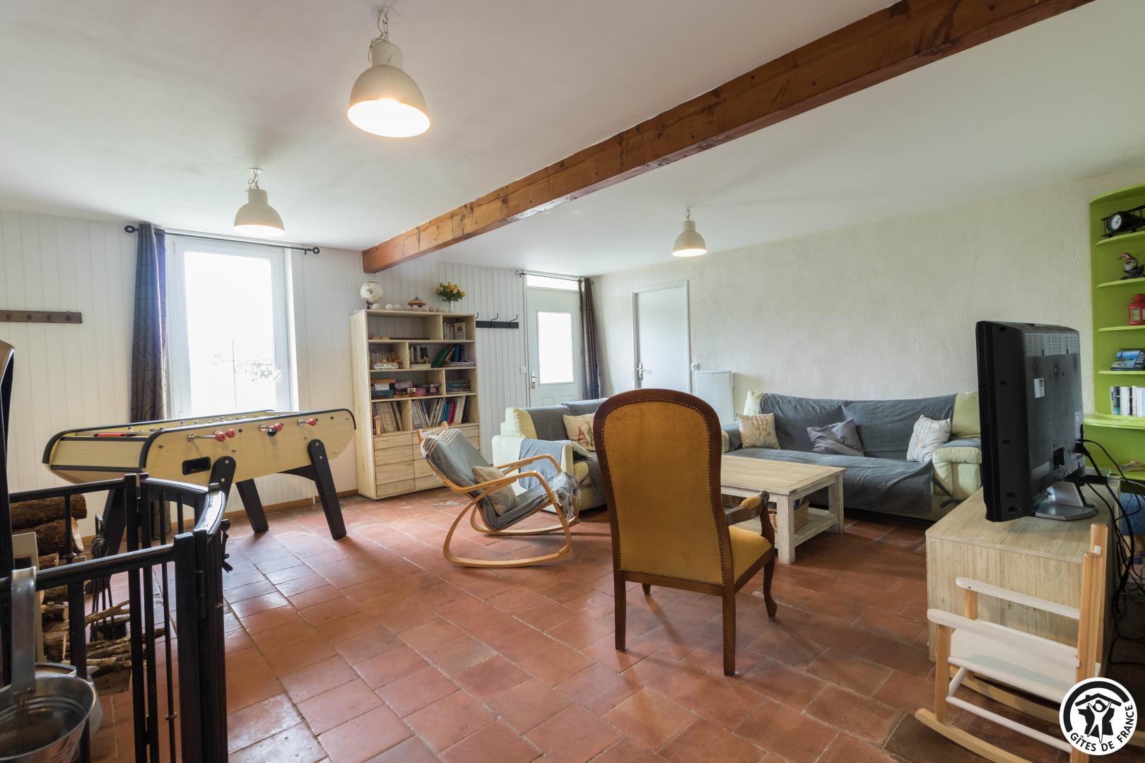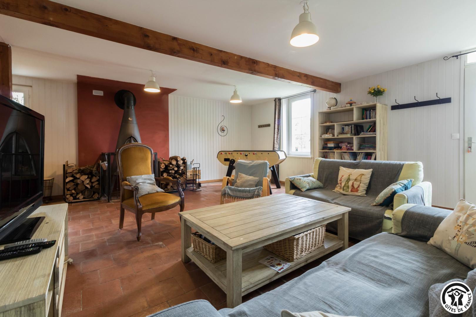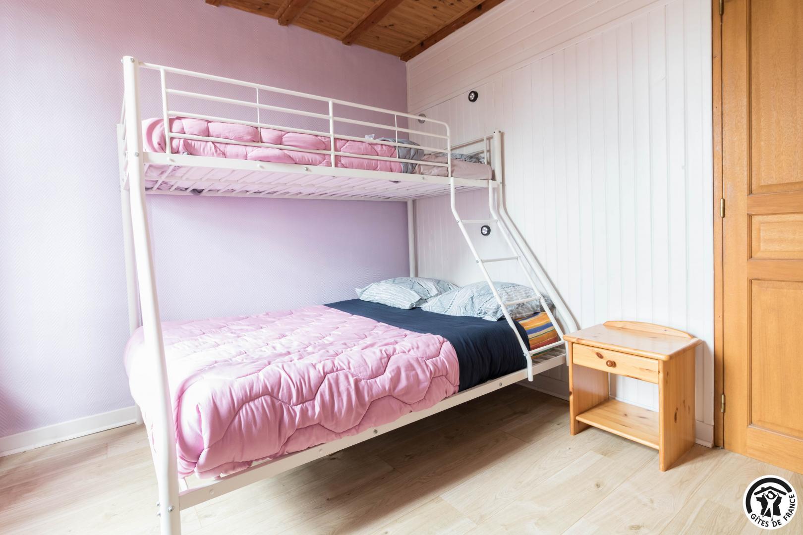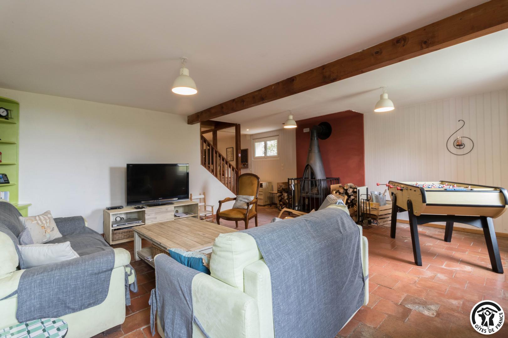 Le logement principal est composé au rez-de-chaussée d’une véranda accueillant la salle à manger et une cuisine d’été, d’une cuisine (appareil à raclettes, crêpière…), d’un vaste salon (babyfoot, poêle à bois), d’une salle d’eau et d’un WC. A l’étage, un palier distribue 4 chambres (chambre enfants avec lit mezzanine : 1 lit 2 personnes en 140 en bas, 1 lit 1 personne en 90 en haut), (1 lit 2 personnes en 160) (1 lit 2 personnes en 160) (2 lits 1 personne en 90), WC.