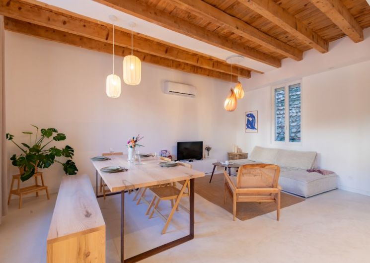Cette charmante maison de ville au cœur de Perpignan date des années 1900. Dernièrement restaurée elle est très agréable à vivre et très calme. Vous pourrez apprécier le centre ville et le quartier des poètes à pieds, puis les plages à seulement 10 min en voiture. Une suite parentale spacieuse de 45m2 vous accueillera avec sa salle de bain composé d’une douche, baignoire îlot, double vasque ainsi qu’un espace bureau et un grand lit en 160cm. Le dressing et le lave linge (utilisation gratuite) attenant permettront d’entreposer confortablement votre garde robe. Au deuxième et dernier étage se trouve trois chambres spacieuses et une deuxième salle de bain. Vous découvrirez un magnifique séjour, salle à manger et cuisine tout équipée donnant sur un patio investi par son magnifique avocatier et une jolie table à manger d’extérieur. Une place de parking gratuite et des places de parking sont présentent dans la rue.