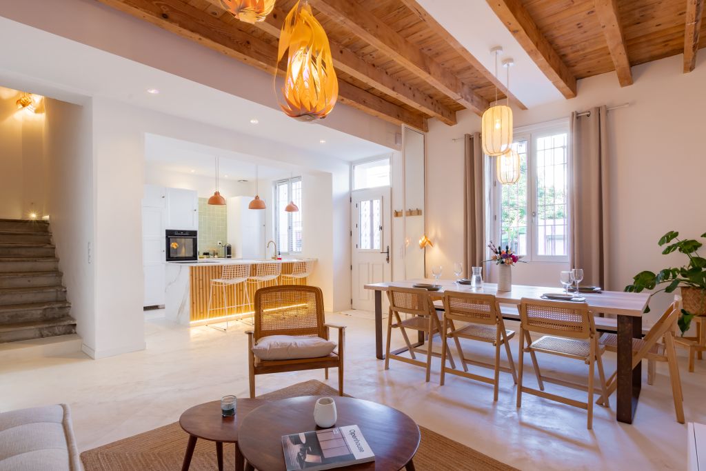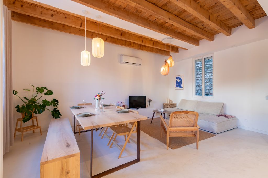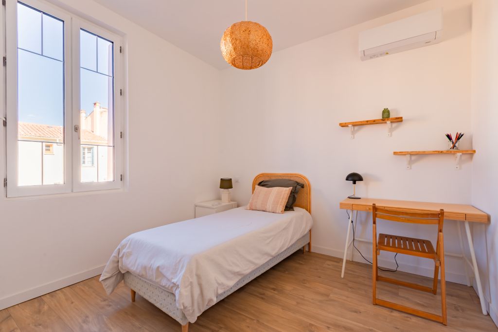 Cette charmante maison de ville au cœur de Perpignan date des années 1900. Dernièrement restaurée elle est très agréable à vivre et très calme. Vous pourrez apprécier le centre ville et le quartier des poètes à pieds, puis les plages à seulement 10 min en voiture. Une suite parentale spacieuse de 45m2 vous accueillera avec sa salle de bain composé d’une douche, baignoire îlot, double vasque ainsi qu’un espace bureau et un grand lit en 160cm. Le dressing et le lave linge (utilisation gratuite) attenant permettront d’entreposer confortablement votre garde robe. Au deuxième et dernier étage se trouve trois chambres spacieuses et une deuxième salle de bain. Vous découvrirez un magnifique séjour, salle à manger et cuisine tout équipée donnant sur un patio investi par son magnifique avocatier et une jolie table à manger d’extérieur. Une place de parking gratuite et des places de parking sont présentent dans la rue.