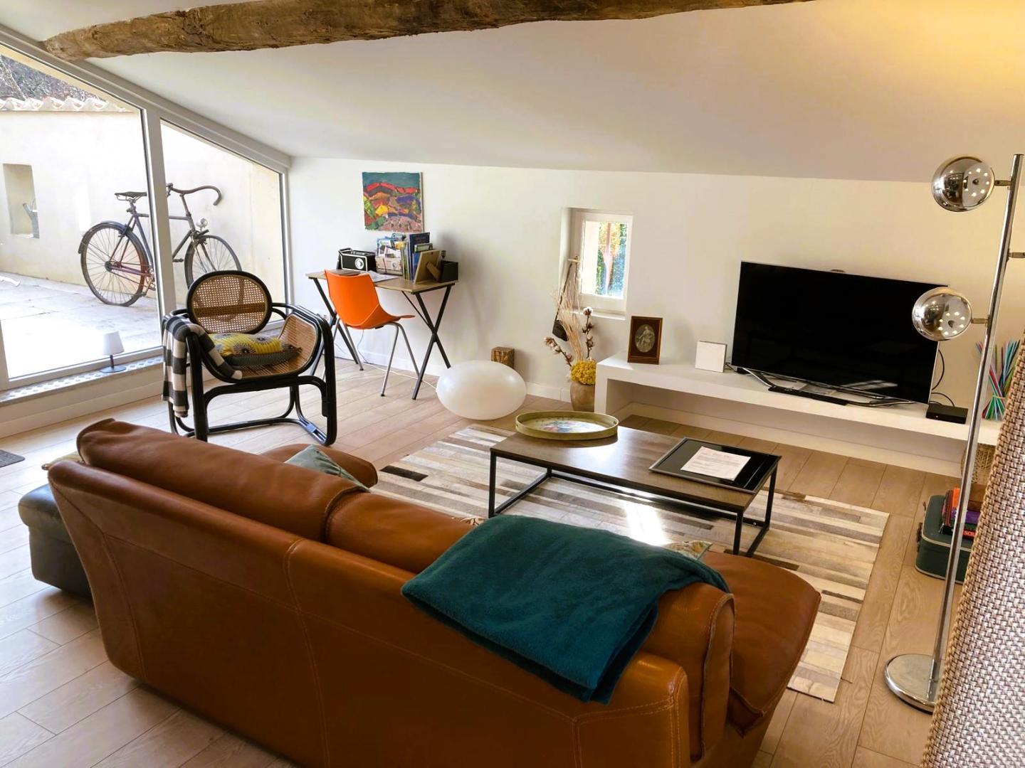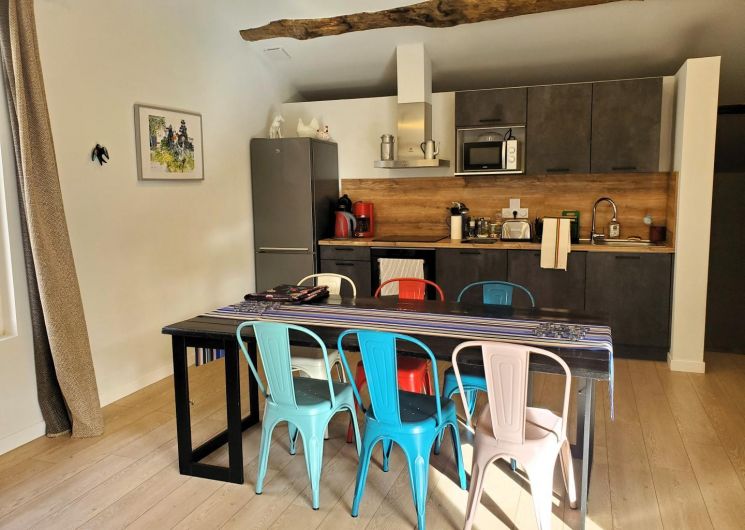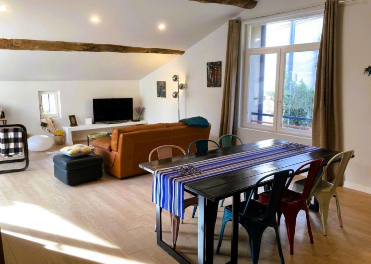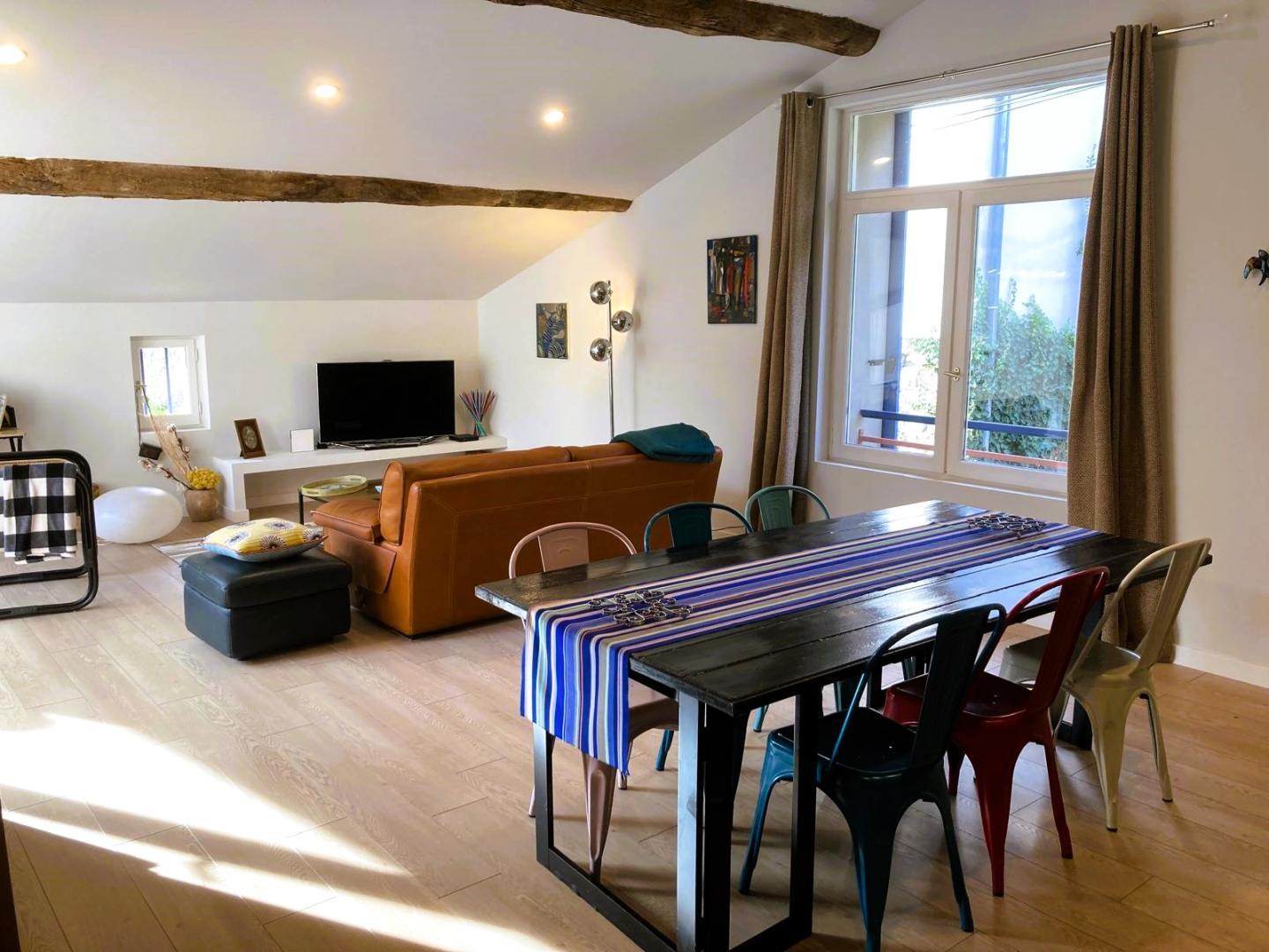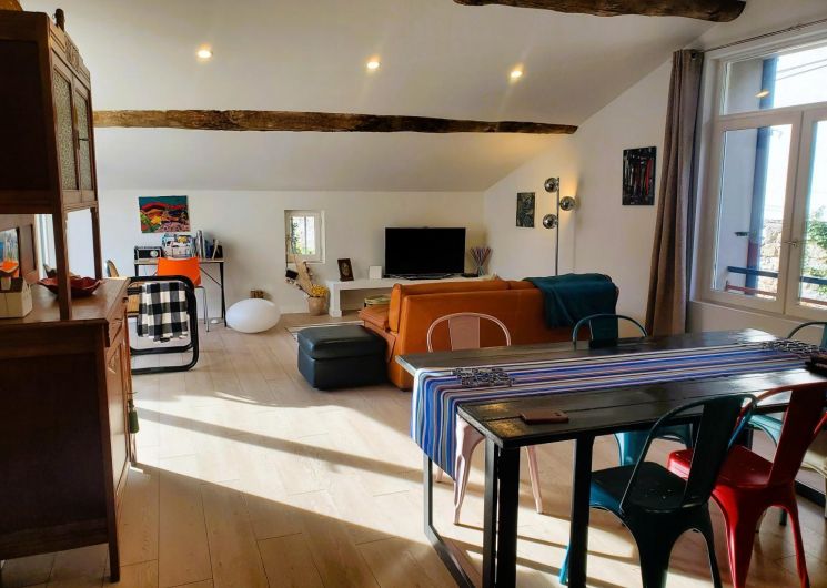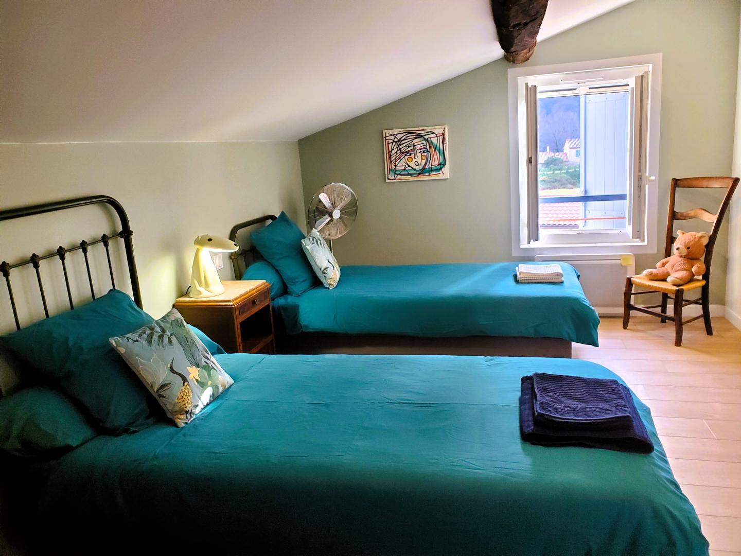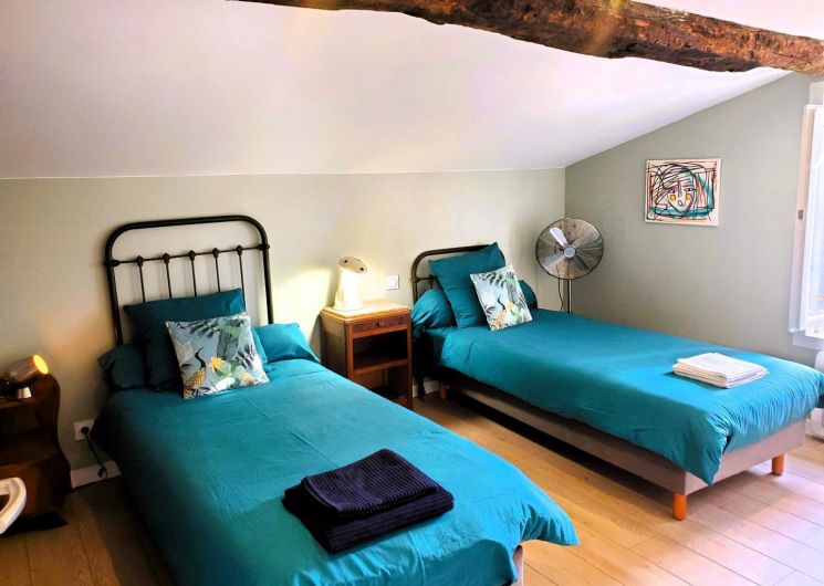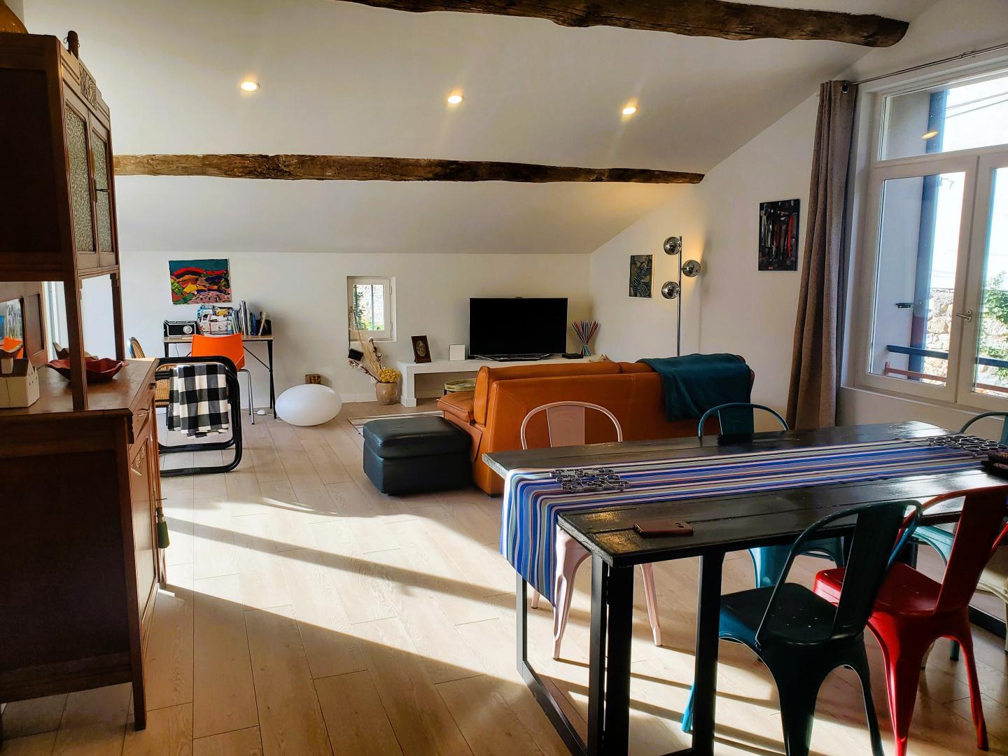 Cette maison mitoyenne, à l’ambiance traditionnelle se déploie sur un seul niveau. À l’étage, vous trouverez une pièce de vie chaleureuse composée d’un salon, d’une salle à manger et d’une cuisine ouverte, équipée d’une plaque à induction 3 foyers, d’une bouilloire, d’un grille-pain ainsi que de cafetières à filtre et Senseo. Deux chambres confortables complètent l’espace nuit : • Une chambre avec un lit double en 160×200 cm • Une chambre avec deux lits simples en 90×190 cm Pour votre confort, la pièce à vivre dispose de la climatisation, tandis que les chambres sont équipées de ventilateurs sur pied. Une salle d’eau est également à votre disposition. Le WC est indépendant. À l’extérieur, vous profiterez d’une agréable terrasse aménagée avec mobilier de jardin, parfaite pour vos repas en plein air ou vos moments de détente face aux paysages vallonnés du Vallespir. Deux places de stationnement sont réservées à proximité immédiate du gîte.