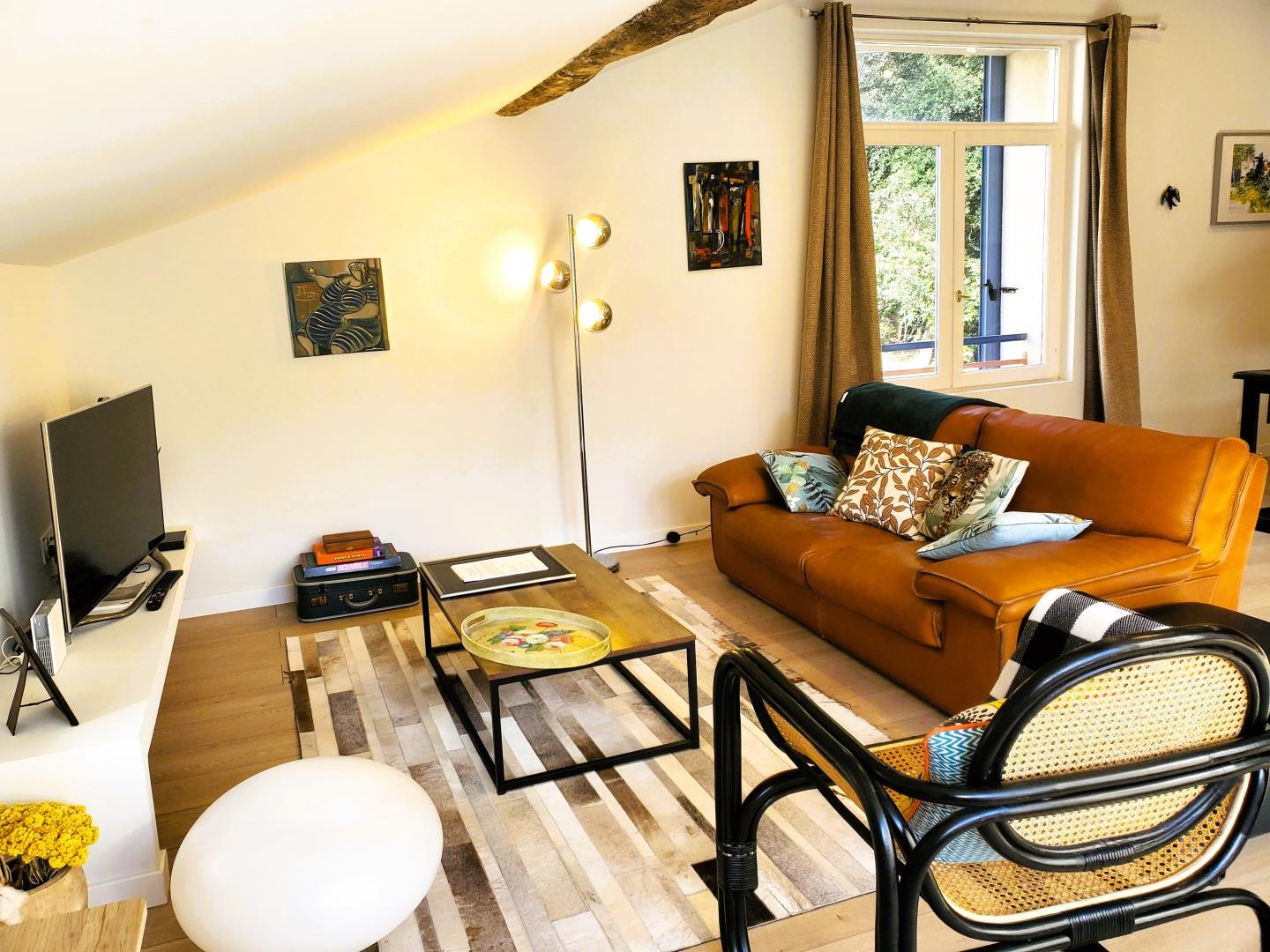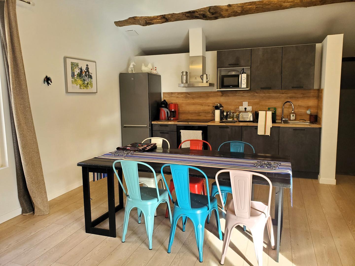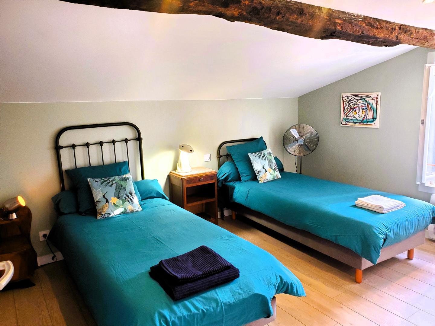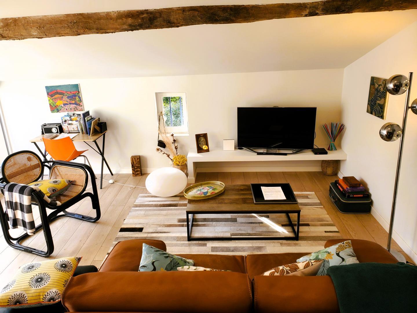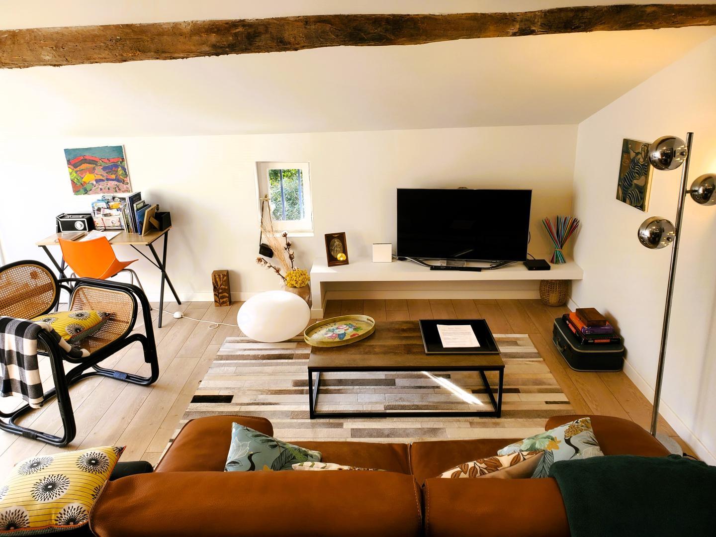 Cette maison mitoyenne, à l’ambiance traditionnelle se déploie sur un seul niveau. À l’étage, vous trouverez une pièce de vie chaleureuse composée d’un salon, d’une salle à manger et d’une cuisine ouverte, équipée d’une plaque à induction 3 foyers, d’une bouilloire, d’un grille-pain ainsi que de cafetières à filtre et Senseo. Deux chambres confortables complètent l’espace nuit : • Une chambre avec un lit double en 160×200 cm • Une chambre avec deux lits simples en 90×190 cm Pour votre confort, la pièce à vivre dispose de la climatisation, tandis que les chambres sont équipées de ventilateurs sur pied. Une salle d’eau est également à votre disposition. Le WC est indépendant. À l’extérieur, vous profiterez d’une agréable terrasse aménagée avec mobilier de jardin, parfaite pour vos repas en plein air ou vos moments de détente face aux paysages vallonnés du Vallespir. Deux places de stationnement sont réservées à proximité immédiate du gîte.