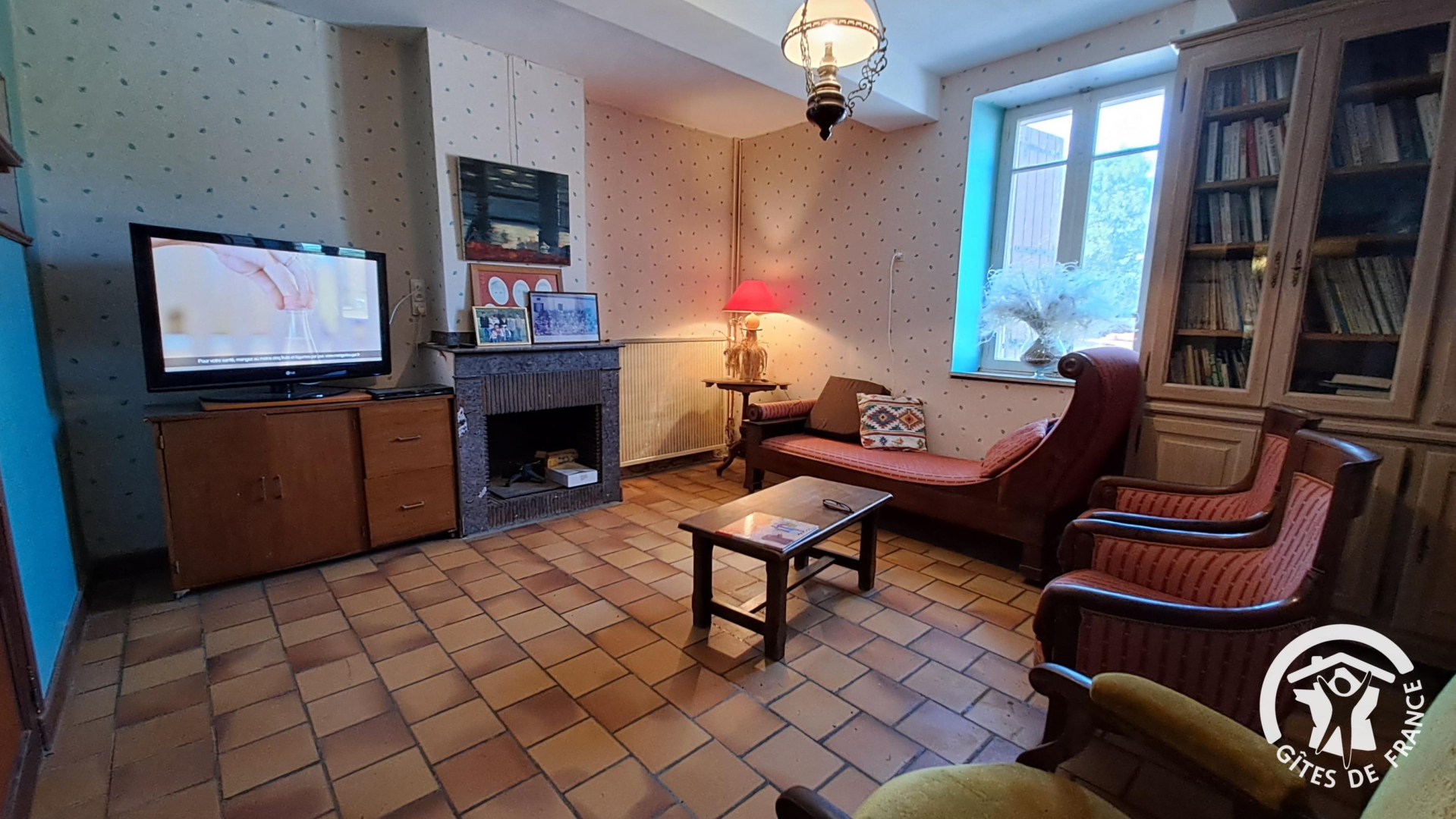 – Au rez-de-chaussée : salon avec bibliothèque et tv, salle à manger avec coin-cuisine accessible aux locataires.