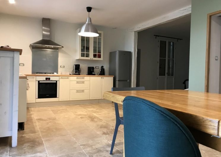 L’hébergement dispose d’une grande cuisine salle à manger avec grande baie vitrée donnant sur la terrasse couverte entièrement refaite en bois, une petite pièce cheminée avec 2 fauteuils, buanderie, salon de 22 m2, 4 chambres dont 2 de plus de 20m2 (2 lits 160, 1 lit 140, 4 lits 90), salle d’eau/wc (5m2), salle de bain (6m2), wc. Draps fournis et lits faits à l’arrivée.
