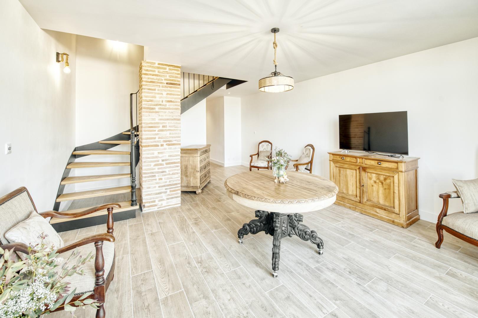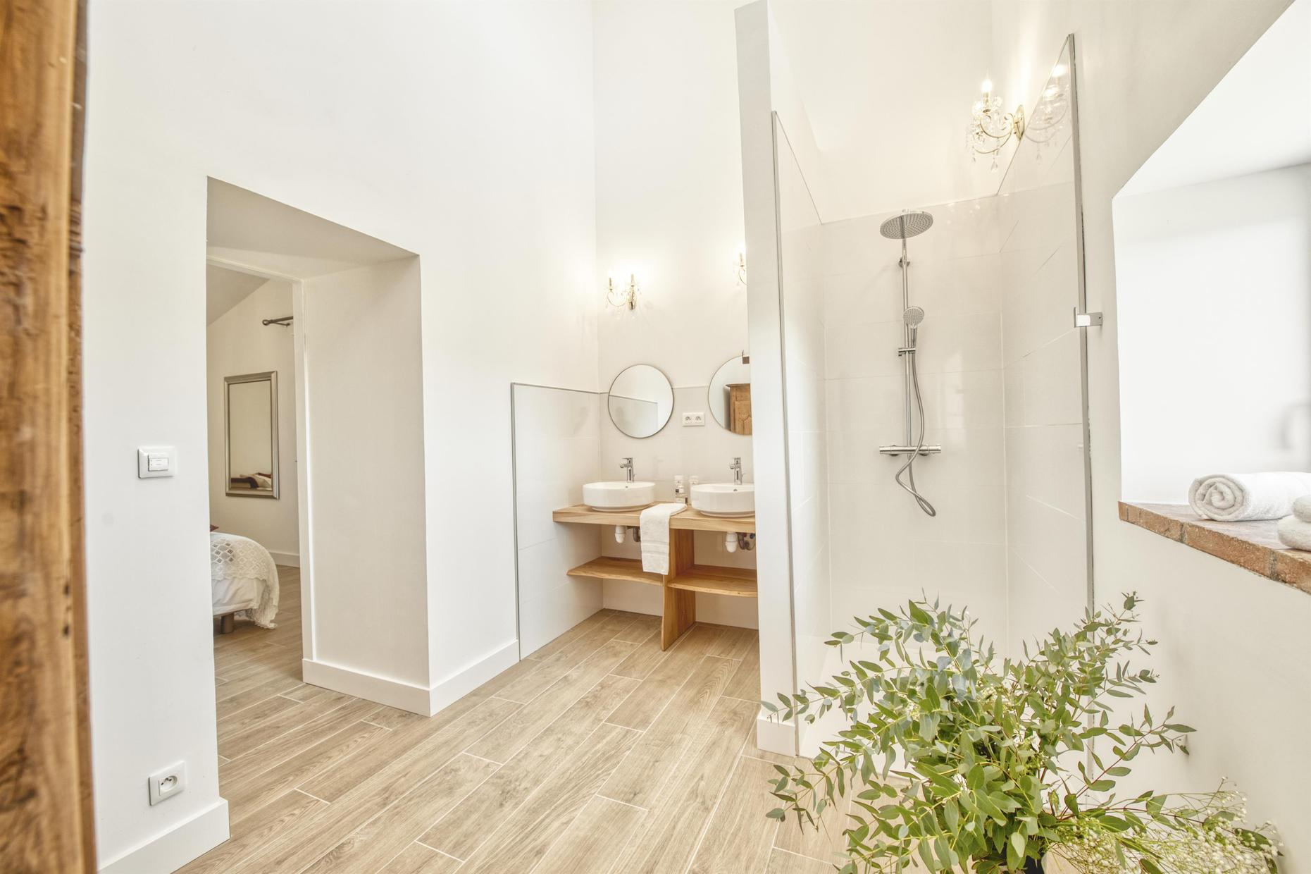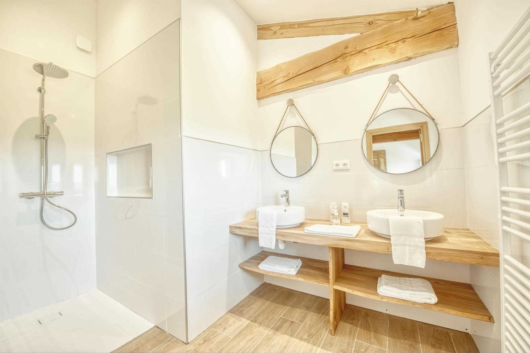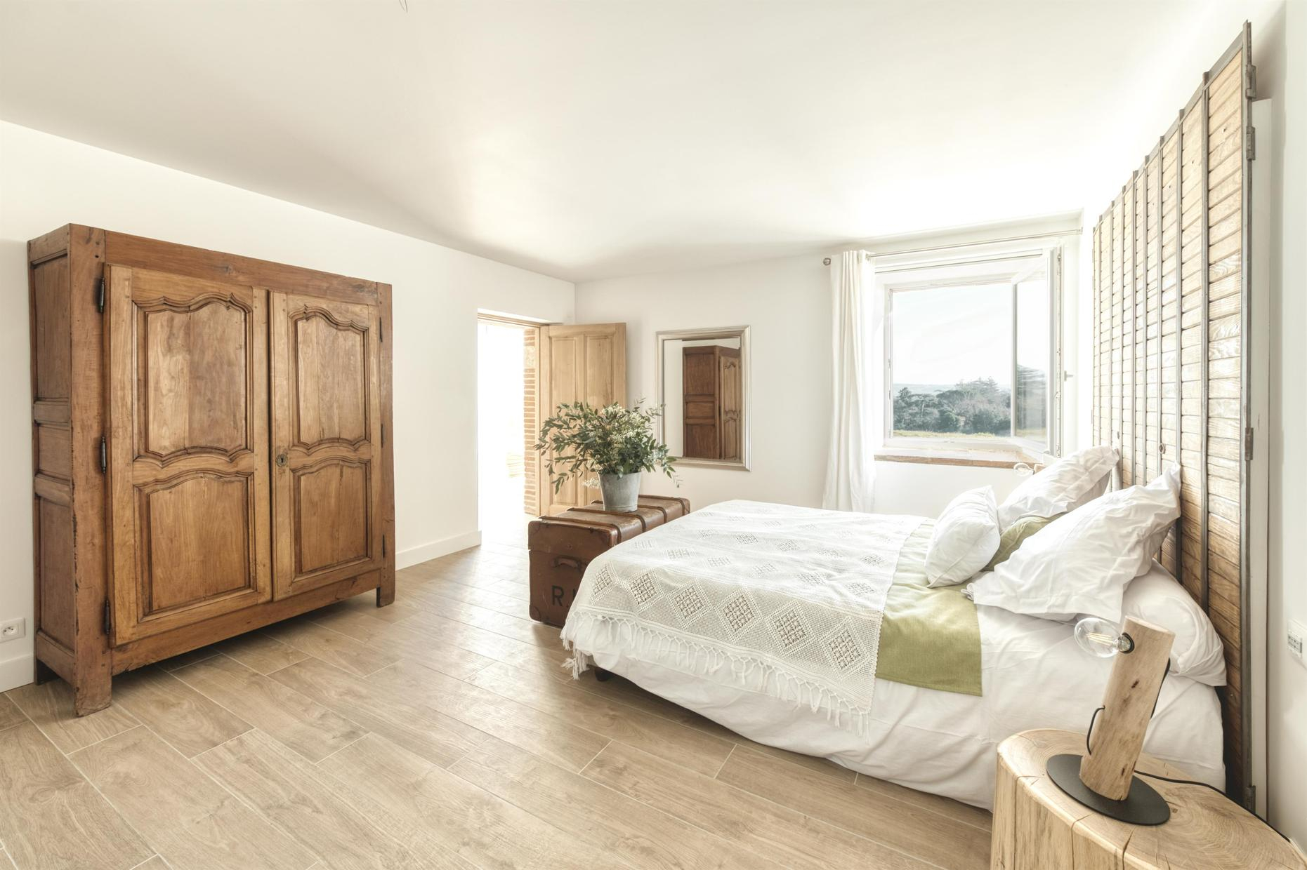L’engagement d’Anne dans une démarche écoresponsable s’est traduit dans tous les domaines : utilisation de matériaux locaux, meubles anciens rénovés, approvisionnement en circuits courts, récupération des eaux pluviales… La décoration de la maison, chic et sobre, fait la part belle aux matières naturelles et au made in France.