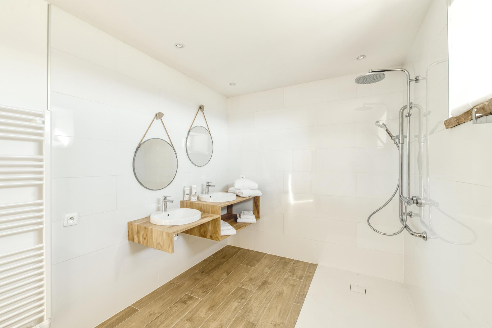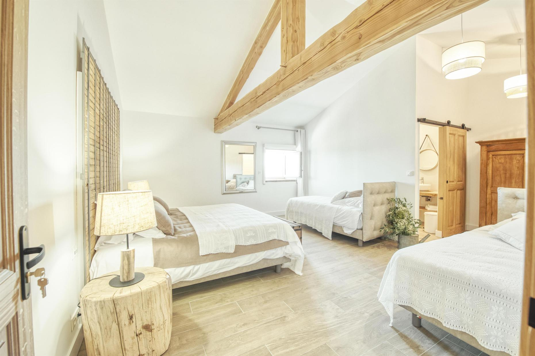 – à l’étage, 3 chambres : Le Pigeonnier Romantique (1 lit pour 2 personnes en 160cm, salle d’eau, WC séparé), Les Ailes du Moulin (1 lit pour 2 personnes en 160cm, possibilité de lit d’appoint pour 1 personne en 90cm, salle d’eau, WC séparé) et Le Soleil Levant (2 lits pour 1 personne en 90cm jumelables, possibilité de lits d’appoint en 90cm, salle d’eau, WC séparé)