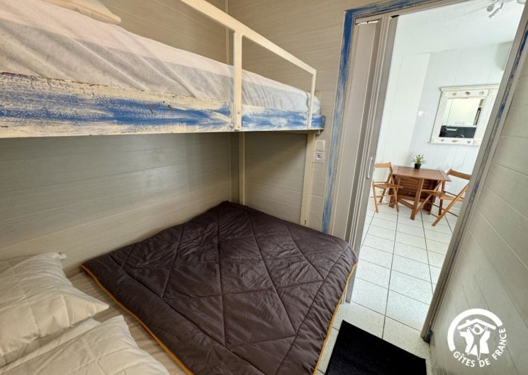 Situé au cœur de la station balnéaire de Port-Leucate, ce gîte de plain-pied climatisé avec terrasse privative et accès à la piscine est idéal pour des vacances en bord de mer dans le sud de la France. Installé dans une résidence en première ligne face à la mer, il permet de profiter pleinement de la plage, du soleil méditerranéen et de l’ambiance conviviale de cette destination prisée du littoral. Le logement se compose d’une pièce de vie agréable et fonctionnelle avec un séjour équipé d’une télévision et d’un canapé convertible 2 personnes, parfait pour se détendre après une journée à la plage. La cuisine ouverte entièrement équipée permet de cuisiner facilement pendant votre séjour ( lave-vaisselle, micro-ondes combiné four, réfrigérateur-congélateur, cafetière à filtre). L’espace nuit dispose d’une chambre avec lit superposé comprenant un couchage de 120 × 190 cm en partie basse et un couchage de 90 × 190 cm en partie haute, idéal pour les familles avec enfants. Une salle d’eau indépendante avec douche, WC et lave-linge complète l’hébergement pour un séjour pratique et confortable. La terrasse privative vous permettra de prendre vos repas en extérieur ou de profiter des douces soirées méditerranéennes (avec le barbecue). La résidence dispose également d’un accès à la piscine (ouverte de juin à septembre), un vrai plus pour alterner entre baignade en mer et moments de détente. Parking sécurisé à l’intérieur de la résidence. À quelques pas du gîte, vous pourrez profiter des longues plages de sable fin de Port-Leucate, idéales pour la baignade, les promenades en bord de mer ou les activités nautiques. La station est réputée pour ses spots de glisse sur l’Étang de Leucate, très appréciés des amateurs de kitesurf, de planche à voile et de paddle. Le port, les marchés locaux et les restaurants de fruits de mer vous permettront également de découvrir les spécialités régionales et l’ambiance typique du littoral méditerranéen.