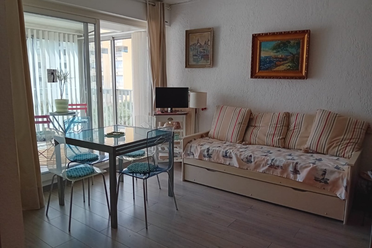 Découvrez notre charmant appartement F2, pensé pour votre confort et votre sécurité, niché au 4ème étage. Idéal pour accueillir 3 à 4 personnes, cet espace offre un séjour lumineux et spacieux, agrémenté d’un coin cuisine entièrement équipé. Vous y trouverez une plaque d’induction, un four électrique, une cafetière, un micro-onde, un réfrigérateur avec compartiment congélateur, ainsi qu’un lave-linge et un lave-vaisselle pour votre plus grande praticité. La chambre indépendante est dotée d’un confortable lit double de 140 cm et d’un espace de rangement dans le placard intégré. Dans le séjour, un lit gigogne peut accueillir deux personnes supplémentaires, accompagné de deux fauteuils où vous pourrez vous détendre devant la télévision. La salle de bain, entièrement rénovée, est équipée d’un sèche serviettes pour votre plus grand confort. Profitez également de la loggia offrant une vue imprenable sur le port et les étangs environnants. Un stationnement est disponible à proximité de la location pour votre plus grande commodité. De plus, la plage se trouve à seulement 100 mètres, et vous trouverez tous les commerces nécessaires à seulement 50 mètres de votre pied-à-terre. »