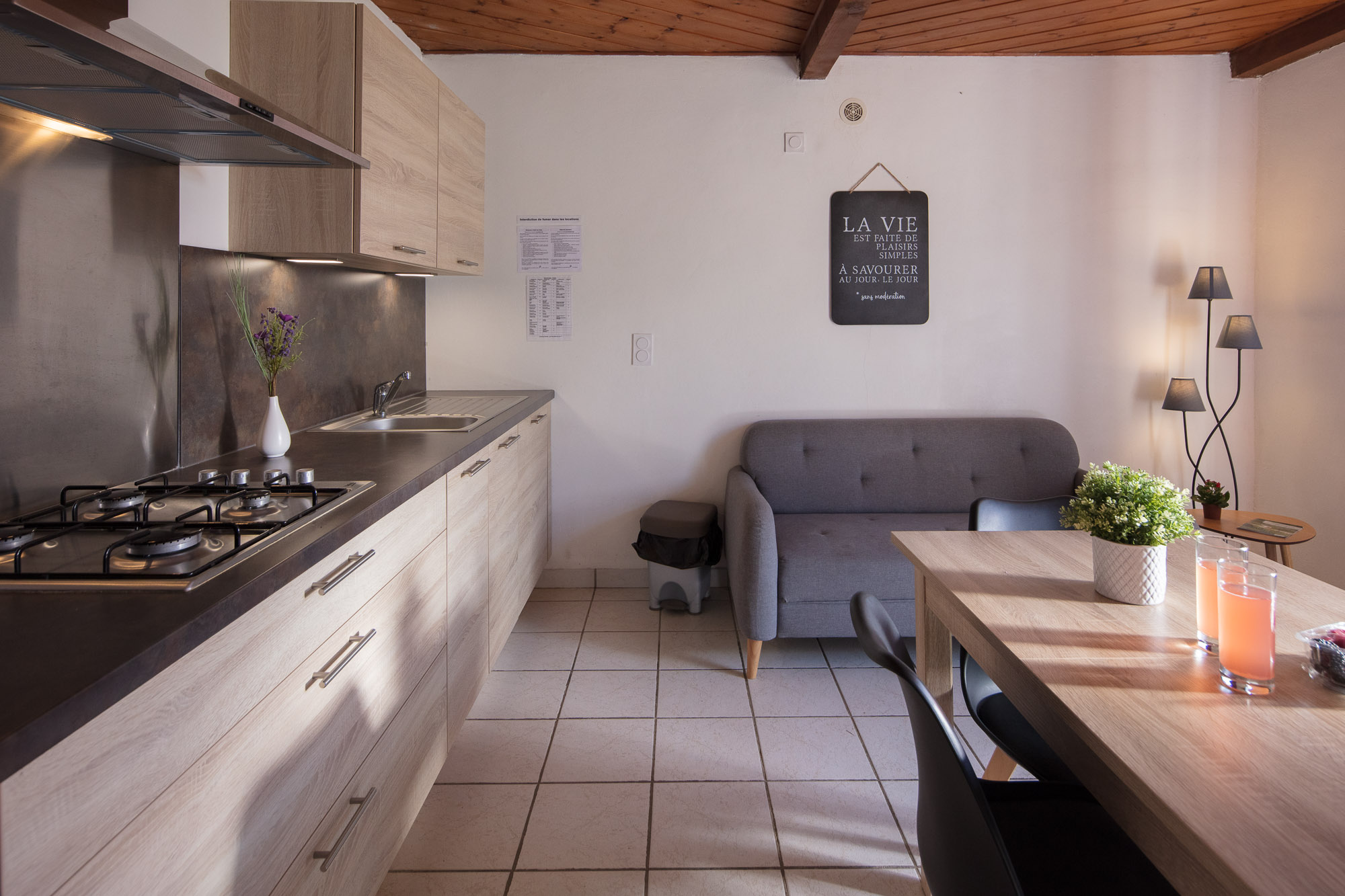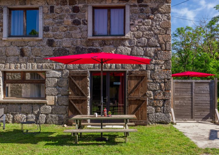 Les gîtes se situent dans une bâtisse en pierres, dans le petit hameau de Bessettes sur la commune de Chastanier en Lozère. Situés à l’entrée du camping Les Sous Bois du Lac***. Le gite F1 RDC dispose d’une terrasse aménagée avec une table en bois et un parasol, salon cosy. Les locataires profiteront de tous les avantages du camping (piscine, animations, soirées dansantes, bar restaurant, dépôt de pain, etc.). La piscine et le bar restaurant ne sont ouverts qu’aux mois de juillet et août.