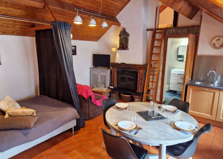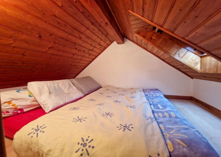 Ce petit chalet cosy, d’une superficie d’environ 40 m², est idéal pour accueillir de 4 à 6 personnes dans une ambiance montagnarde conviviale. Il se compose d’un espace de vie fonctionnel avec coin cuisine équipé, télévision écran plat avec TNT, une banquette clic-clac et une banquette BZ offrant des couchages confortables. La mezzanine accueille un lit double en 140 cm, créant un espace nuit chaleureux et optimisé. Le chalet dispose également d’une salle de bain avec WC. À l’extérieur, vous profiterez d’un jardin agréable ainsi que d’un parking privé. La taxe de séjour est incluse pour plus de simplicité. Un hébergement pratique et authentique pour un séjour réussi à la montagne. Animaux non acceptés. .