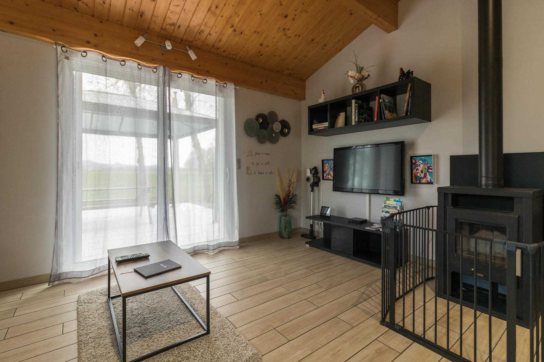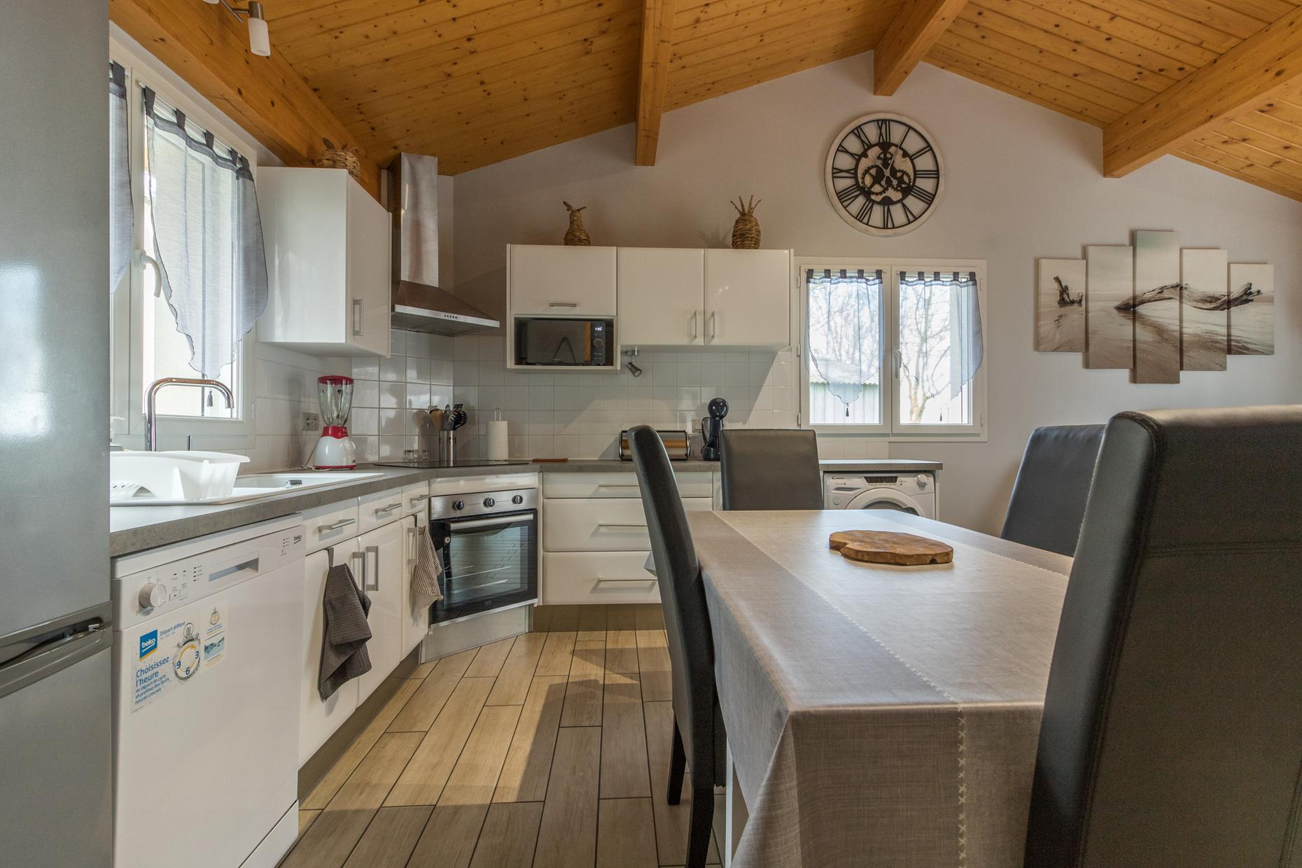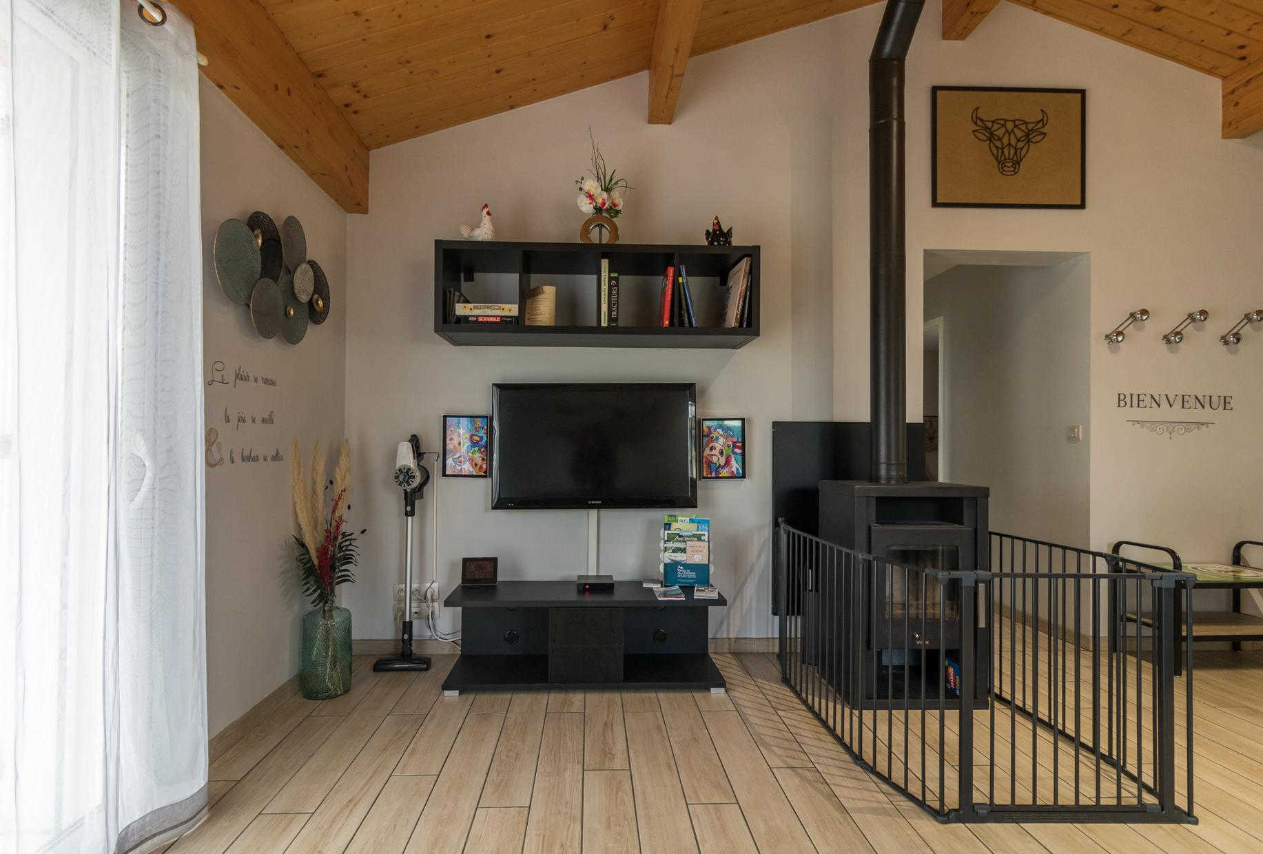 Gîte de plain pied, lumineux, confortable et moderne : entrée directe sur la pièce de vie avec cuisine intégrée, espace repas et coin-salon (chauffage par poêle à bois, protégé par une barrière), deux chambres (2 lits pour 1 personne en 90cm) (1 lit pour 2 personnes en 140cm), salle d’eau/WC (douche à jets). Chauffage électrique. Fenêtres des chambres équipées de moustiquaires. Jardin clos, terrasse, jeux. Accueil Motards. Local à disposition pour ranger des vélos (voie verte de la Rigole de la Plaine à 4km). Parking à l’entrée de l’exploitation pouvant accueillir des camions ou engins (en cas de séjours professionnels), possibilité de garage pour les motos, local vélos pour les cyclotouristes.