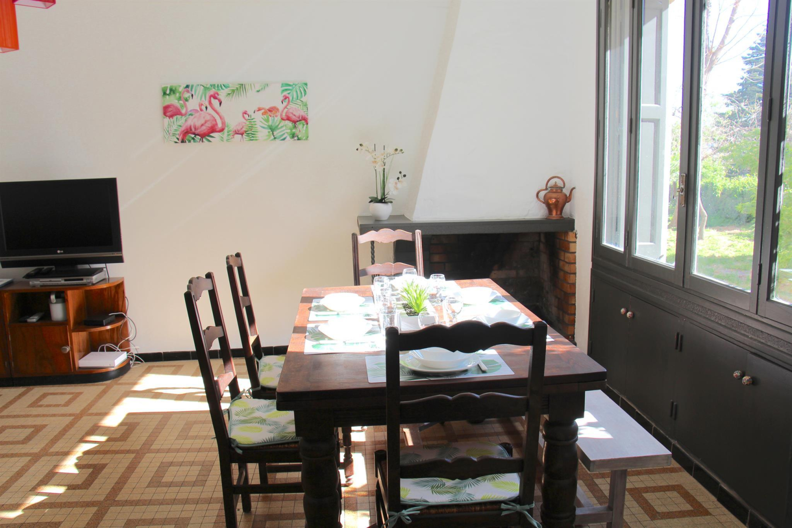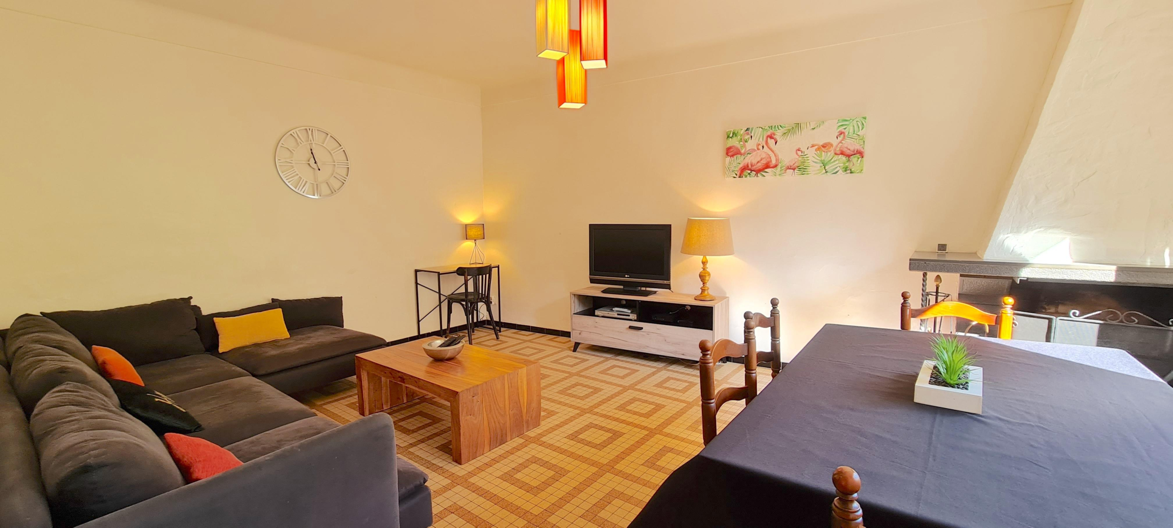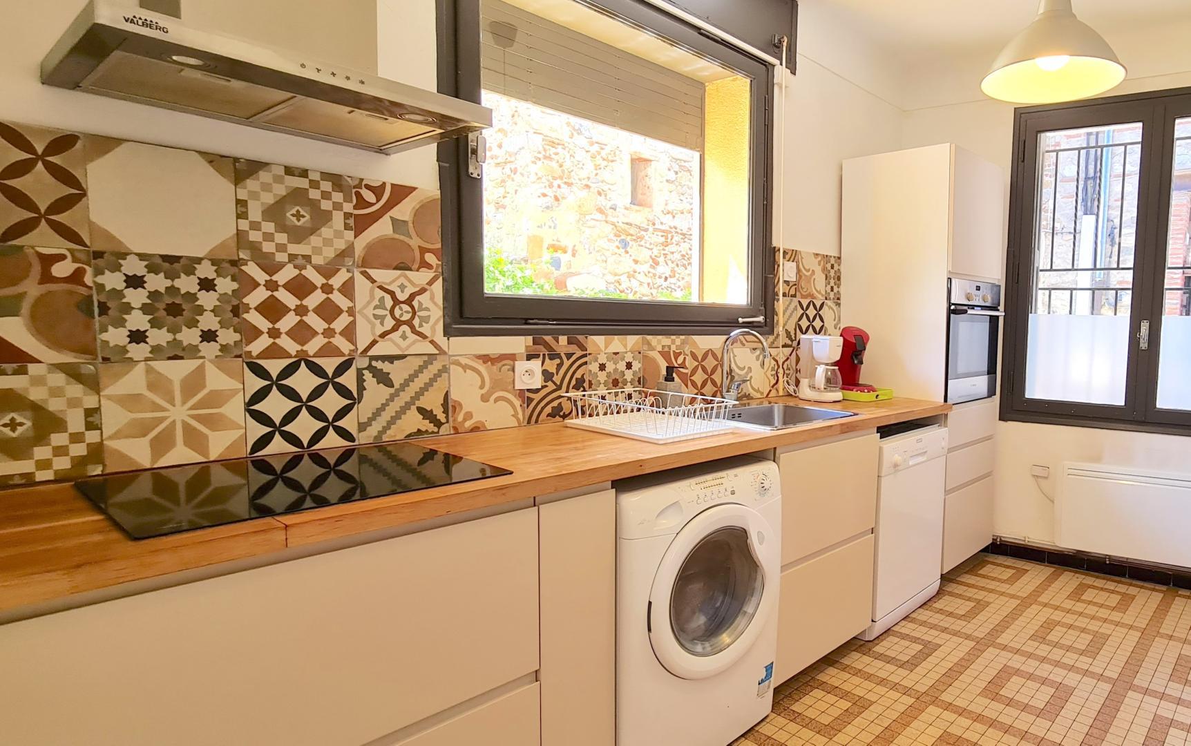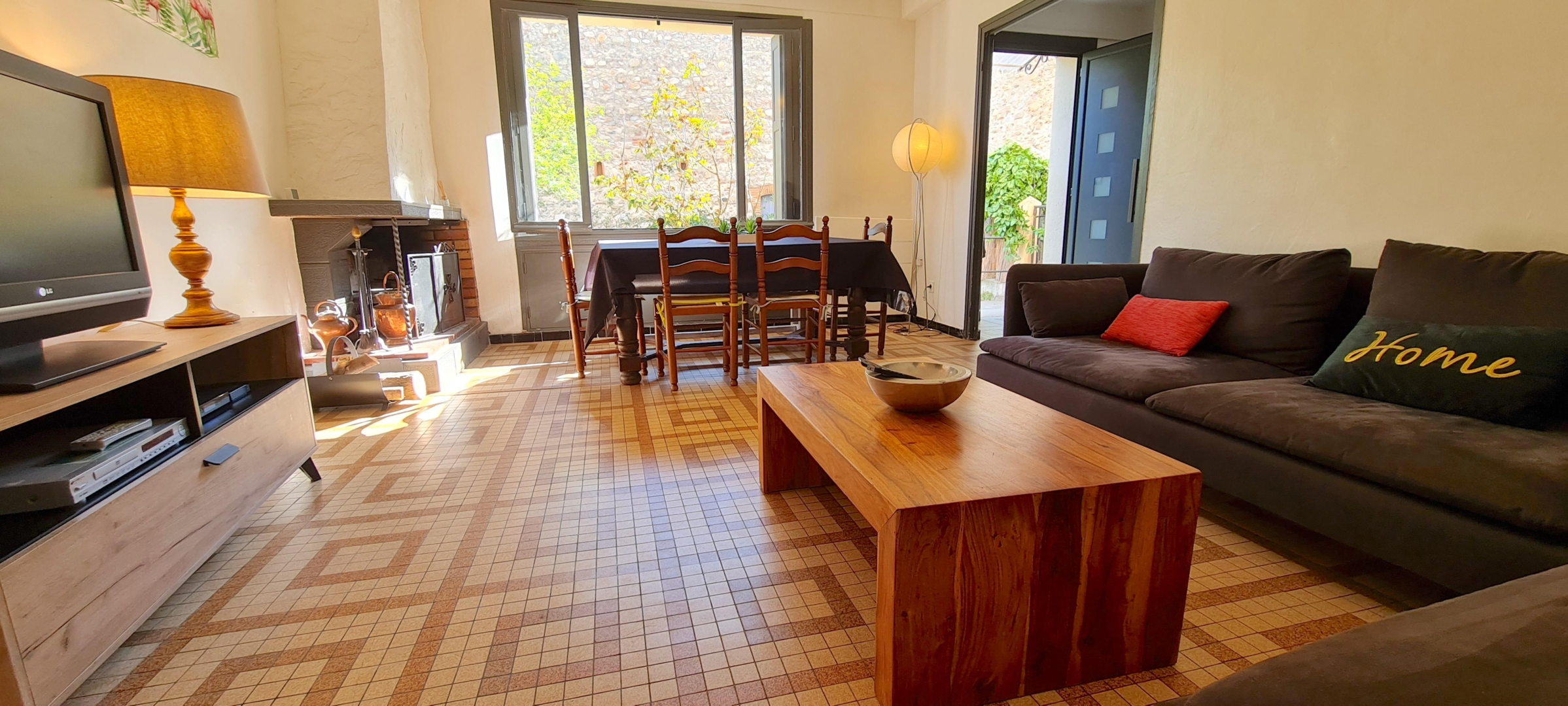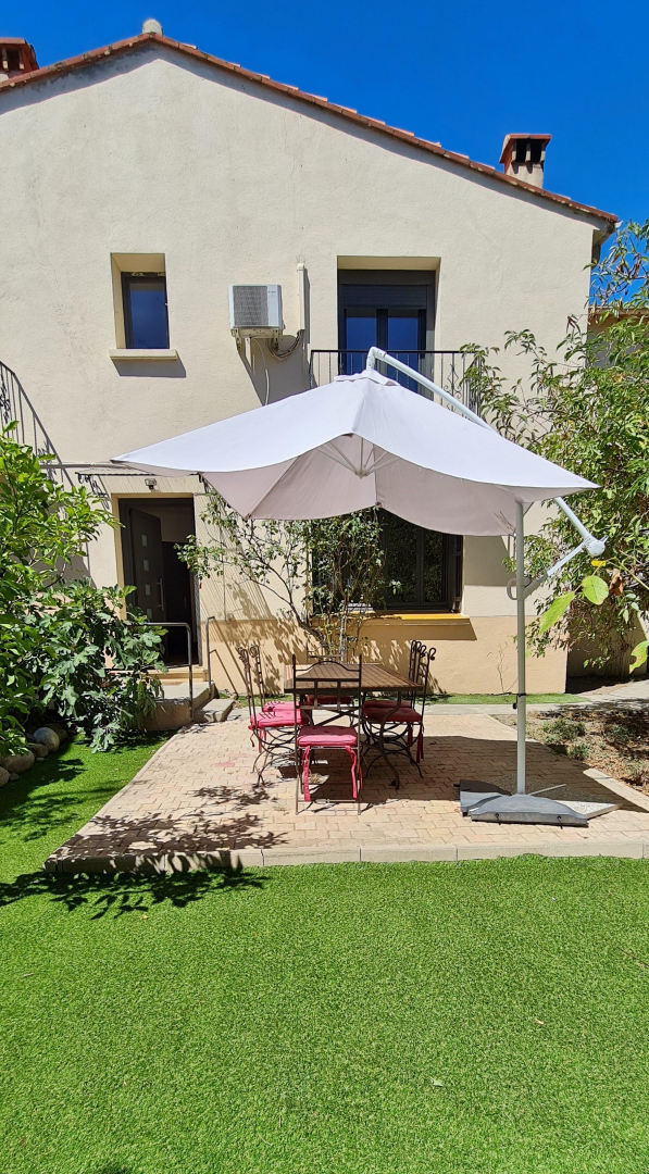 Au coeur du village, mais au calme, ce gîte a été entièrement rénové. C’est une base idéale pour une large découverte du pays catalan jusqu’à Barcelone et pour la pratique de nombreuses activités sportives en pleine nature. Maison des années 50, complétement rénovée. RDC : cuisine avec Frigo américain , salle à manger avec séjour climatisé (cheminée), wc. 1er étage : 1 chambre climatisé (2 lits 1 pers), 1 chambre climatisé (2 lits 1 pers), 1 chambre climatisé(1 lit 2 pers), salle de bains avec baignoire, douche et double vasque. Wc indep. Grand jardin clos (salon de jardin, bains de soleil). Garage (pour un seul véhicule type twingo). Parkings communaux à proximité.