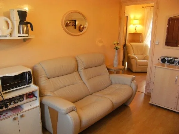 Gîte situé dans une maison individuelle, très ensoleillé, confortable, accessible par 5 marches d’escalier, avec une terrasse et un jacuzzi, un appentis et un parking pouvant accueillir 3 véhicules. Il se situe dans un environnement calme et dégagé. Il est composé d’1 cuisine séjour avec micro-ondes, mini-four, lave-vaisselle, TV…, d’1 chambre avec 1 lit en 140, lave-linge et d’1 salle d’eau avec douche à l’italienne; le chauffage est électrique. Accès internet (en accès limité à 15GO). Les commerces, activités sportives, pharmacie, bus, casino, supermarché sont à proximité.