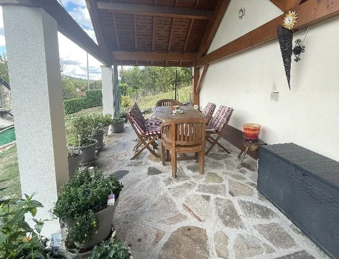 Vue de l’appenti du spa et de la terrasse – © France Kohut meublé Cransac