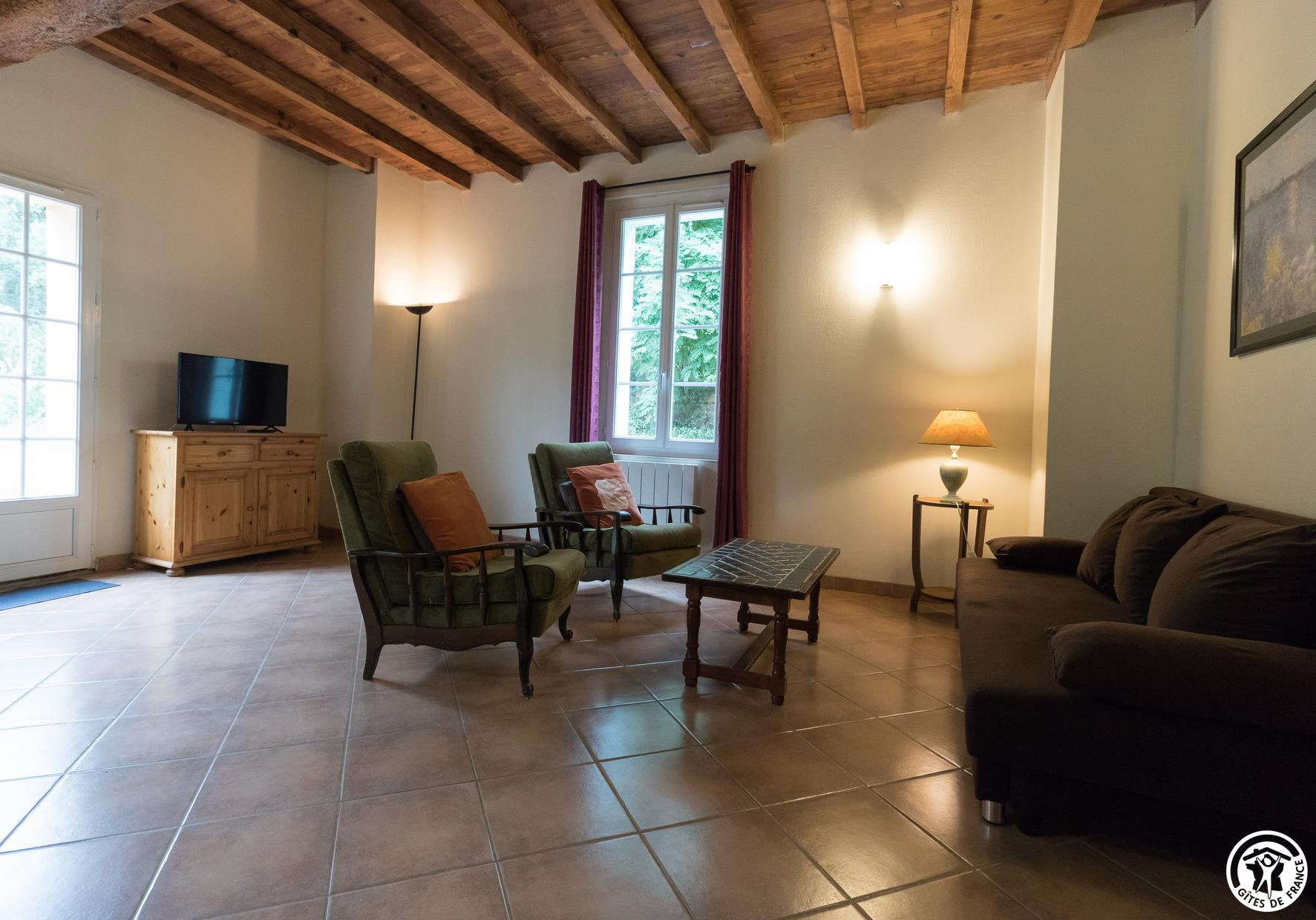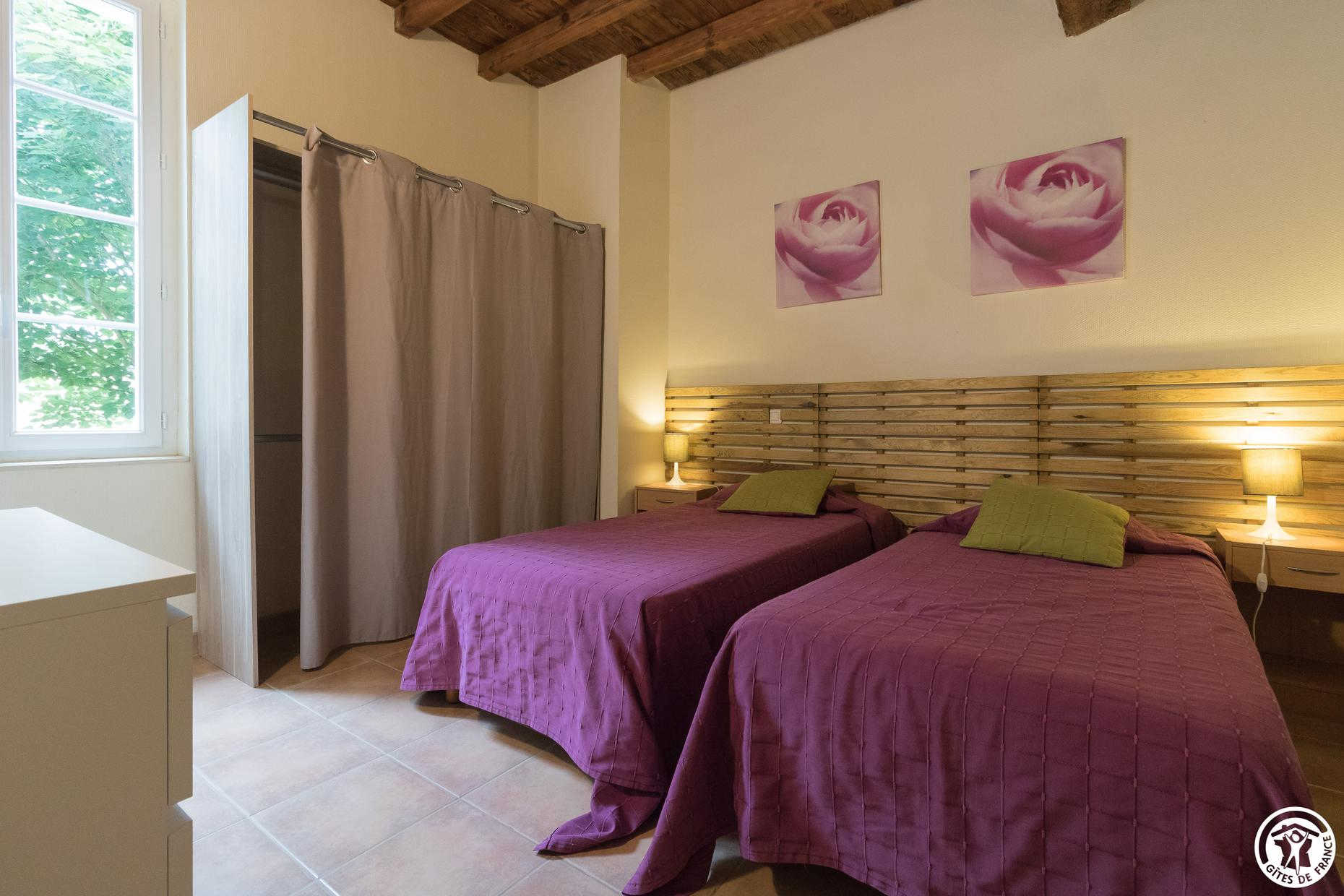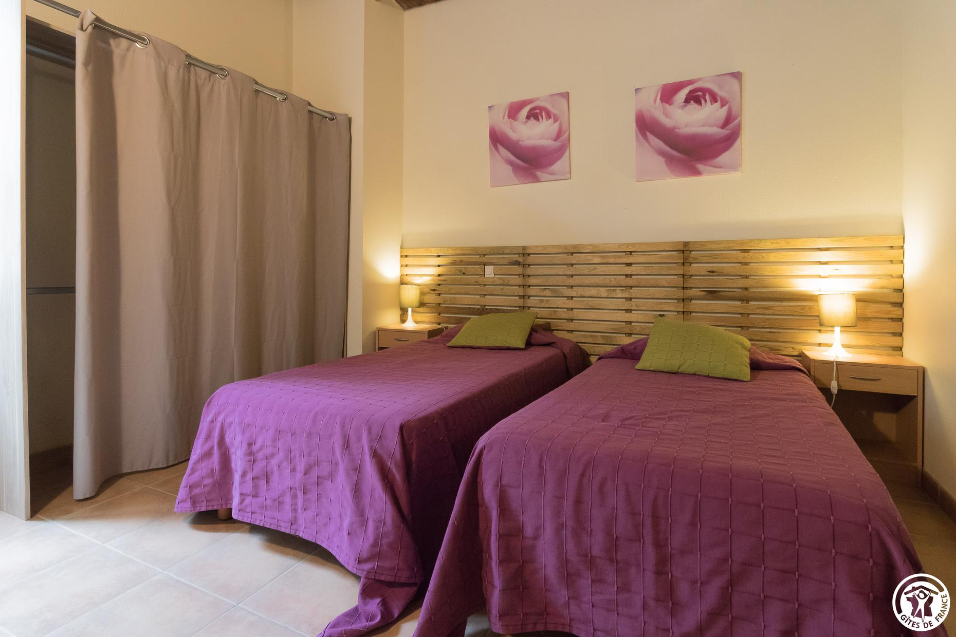 Gîte de plain-pied avec 2 chambres : pièce de séjour comprenant un coin-cuisine, 2 chambres (1 lit 2 personnes en 140cm) (2 lits 1 personne en 90cm), salle d’eau, WC. Chauffage au sol électrique