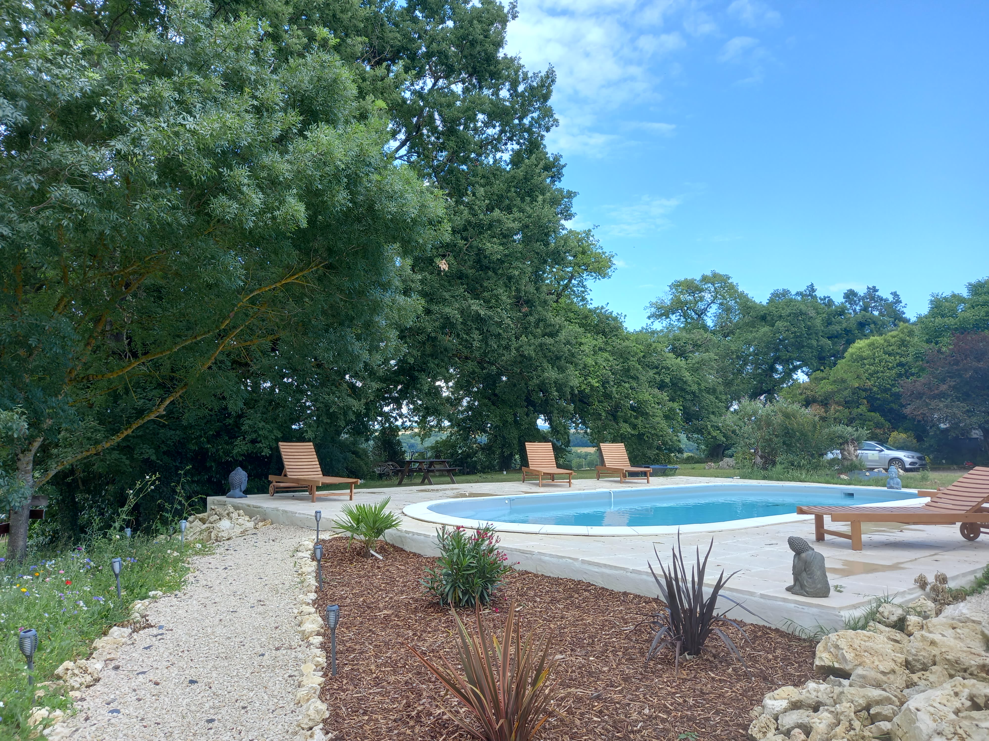 Vous disposerez d’une terrasse extérieure privée donnant sur un jardin sans vis-à-vis et d’une plancha. Profitez aux beaux jours de notre piscine au sel de 10×4, commune au gîte et à la yourte, sécurisée avec une alarme.