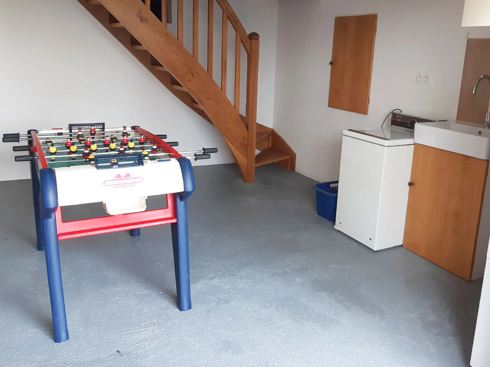 – Vous trouverez au sous-sol un coin buanderie avec une machine à laver le linge et un espace jeux (table de ping-pong et baby-foot). Vous pourrez également y ranger vos vélos et autres affaires de sport.