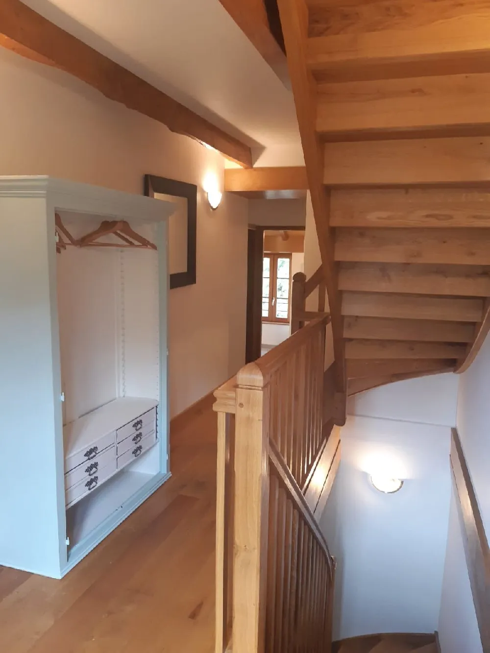 – Au premier étage se trouvent les deux premières chambres (deux lits doubles en 140 x 190 et 160 x 200) dont l’une d’entre elle avec sa salle d’eau privative. Il y a aussi une deuxième salle d’eau et un WC indépendant au même étage.