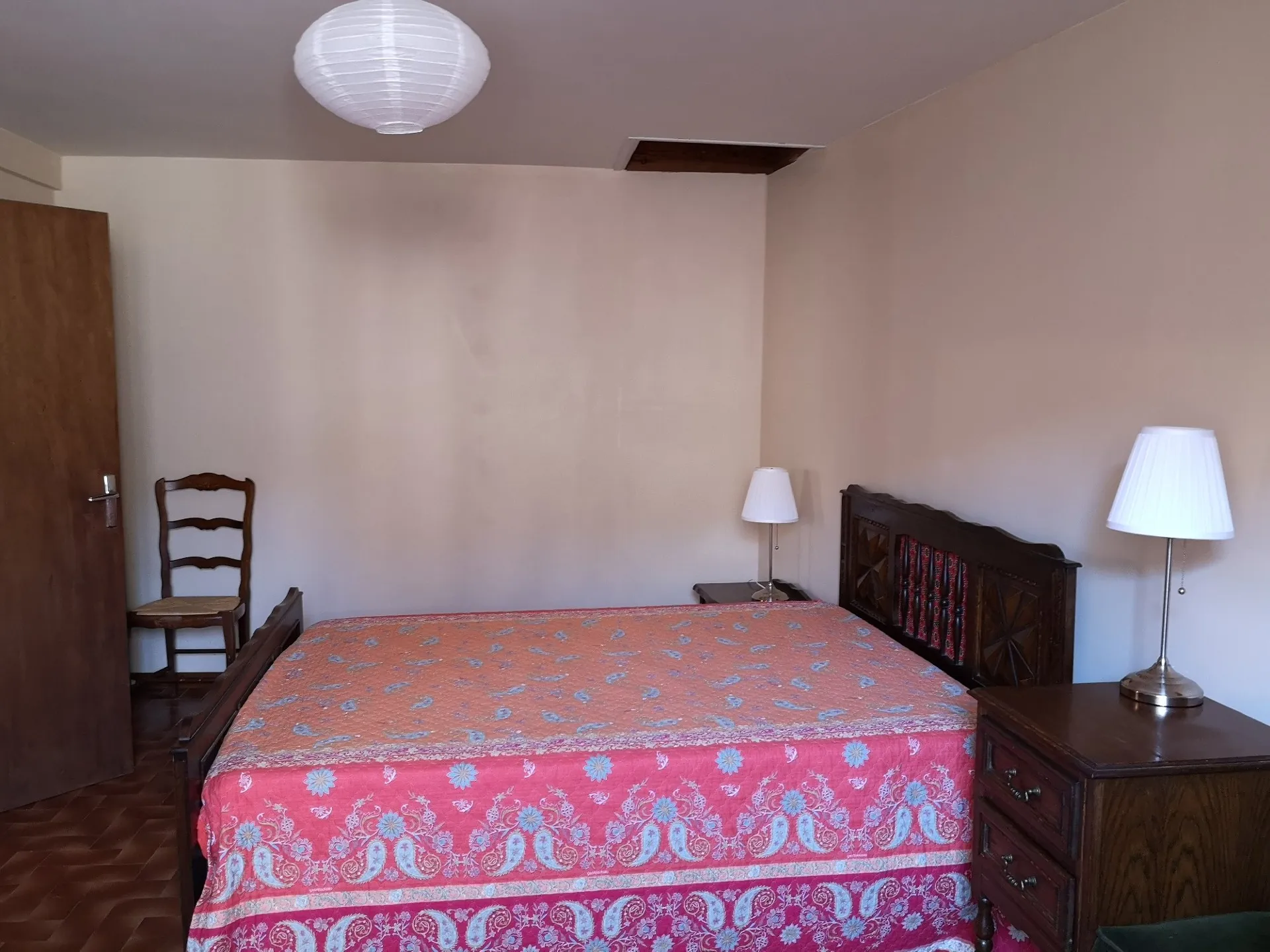 Gîte au 1er étage, mitoyen à la résidence secondaire du propriétaire (inoccupé pendant l’été), aménagé dans 2 maisons de part et d’autre d’une ruelle, reliées par une véranda. 2 chambres (2 lits 140, 1 lit 90), salle d’eau, coin-cuisine, séjour (télévision, canapé), chauffage d’appoint électrique, cave (lave-linge), véranda (14m²), terrasse close (30m2), salon de jardin, barbecue, taxe de séjour. Parking privé. Lit bébé, baignoire et chaise haute à la demande. Draps et linge de toilette non fournis.