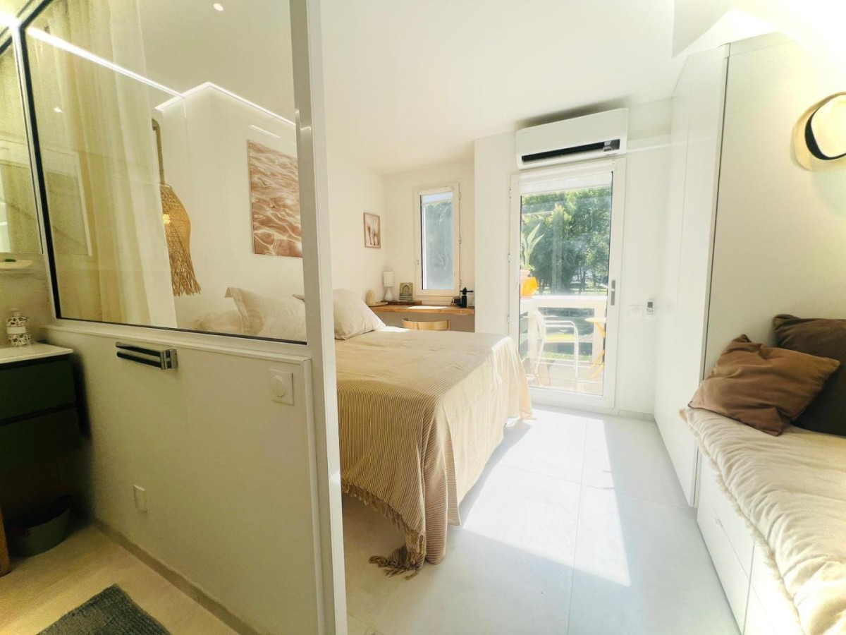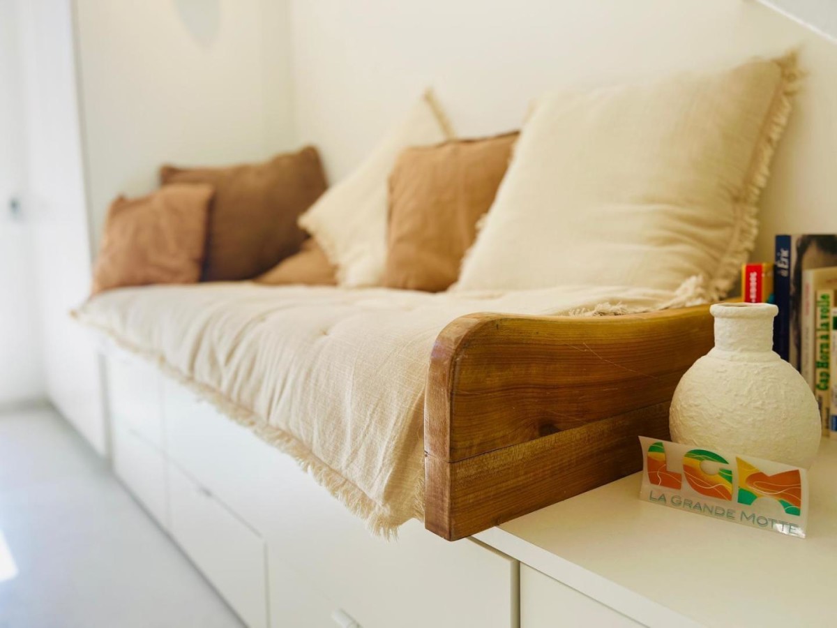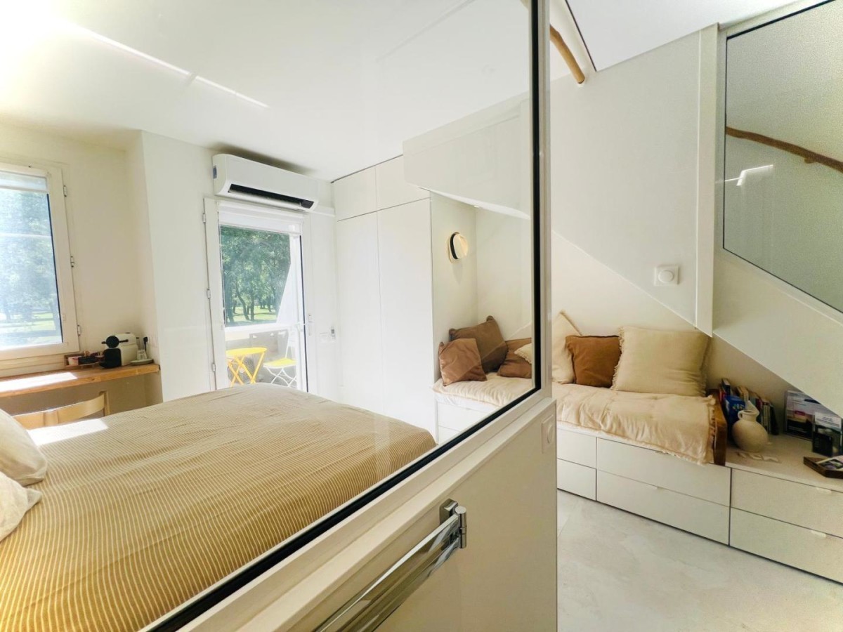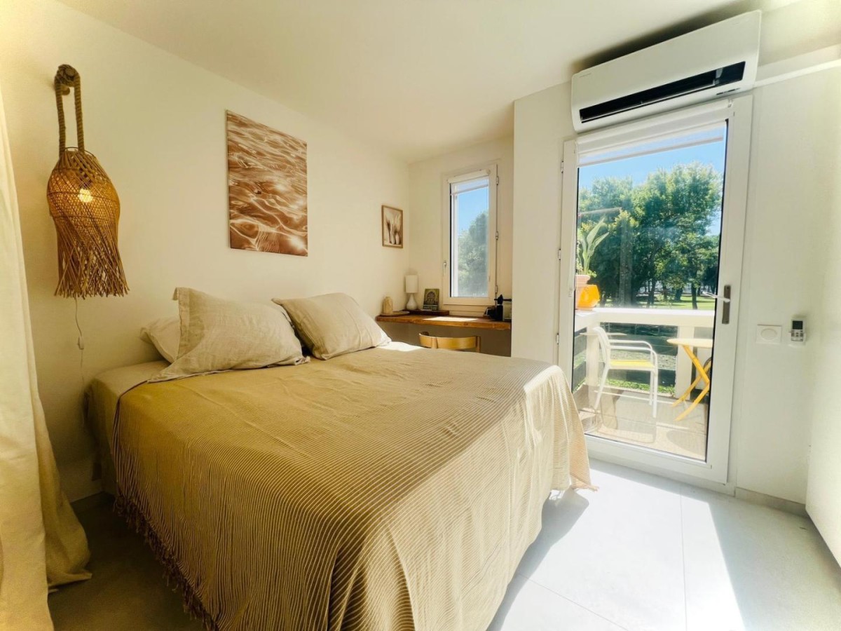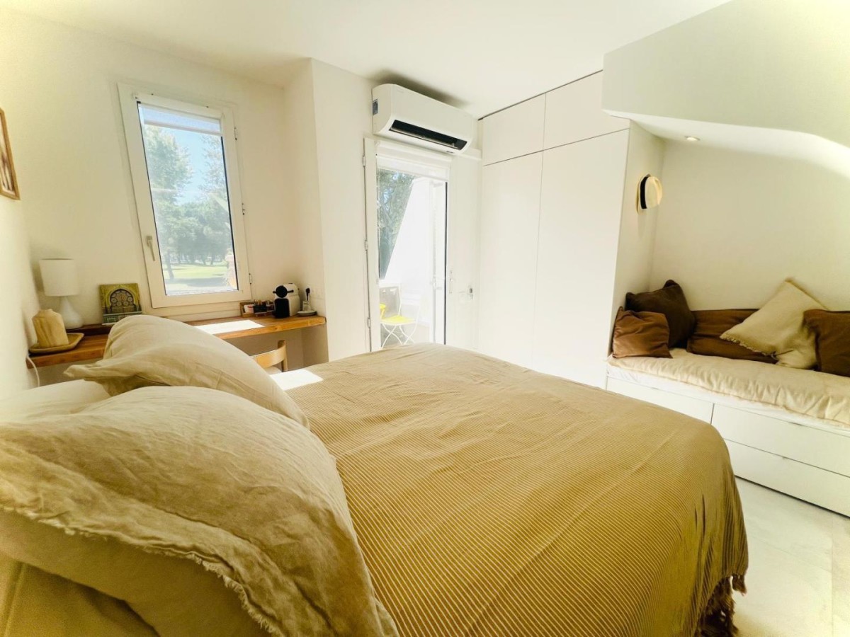 Un duplex raffiné, sur le toit, baigné de lumière ouvert sur trois terrasses intimes sans vis-à-vis, face au golf. On se laisse bercer par la douceur du Sud et l’élégance se mêle à la simplicité méditerranéenne. Le matin, savourez votre café en peignoir (fournis) face au golf sur la terrasse de la chambre sans réveiller les enfants à l’étage et pourquoi ne pas continuer par une randonnée sauvage ou un footing sur les parcours verts du Ponant ou du golf ! À midi, laissez-vous séduire par la douceur de la mer et le rire des enfants rythmé par les vagues la mer se rejoint en un souffle à vélo en 15 à 30 min.* En chemin arrêtez-vous admirer le travail du centre de sauvetage des tortues Le parc accrobranche aventures, le terrain de tennis, les activités raquette, ping-pong et le centre aquatique avec toboggan sont à proximité sur le chemin qui rejoint la Méditerranée. Le soir, partagez un verre en terrasse et une grillade** enveloppée par le calme et la chaleur du Sud, admirer la flamboyance au coucher de soleil des flamants roses et oies sauvages rejoignant leur nid pour la nuit. Envie de sortir? Profitez du coucher de soleil sur l’étang du Ponant à 1 min à pied, assis en terrasse des restaurants ou en écoutant un concert sur l’eau …. En journée, l’étang du vous invite à la sérénité sur un transat en bordure ou aux plaisirs des activités nautiques: aviron, ski nautique, wakeboard, kayak… Découvrez la faune et la flore de cet espace protégé de Camargue avec un guide. Pensé comme un refuge intime pour un couple et deux enfants, Caléa conjugue luxe discret, calme solaire, et confort absolu. Un lieu rare, pour ceux qui cherchent plus qu’une maison de vacances: une expérience. Ici, tout respire le luxe simple: le confort d’un intérieur épuré, la chaleur des matières naturelles, la quiétude des espaces extérieurs. À Caléa, on vient chercher le calme, on repart avec la sérénité et plein de souvenirs d’été. * possibilité de cave à vélo ** barbecue électrique