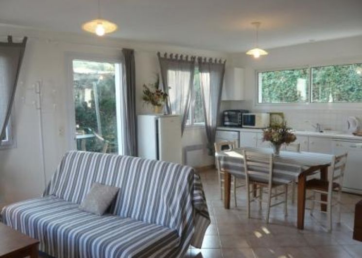 Il est totalement de plain pied. Vous trouverez dans ce gîte une pièce de vie lumineuse, 2 chambres avec salle d’eau dans chacune d’elles, à l’extérieur une terrasse avec salon de jardin et toboggan. 2 ch. (1 lit 2 places, 2 lits 1 place), salle à manger/coin-cuisine/coin-salon, 2 salles d’eau priv. pour chaque ch., wc, cheminée insert, nécessaire bébé (lit, chaise haute, porte bébé, transat, poussette), salon de jardin, barbecue, terrasse, terrain clos privatif, aire de jeux et boulodrome communs avec l’autre gîte. Chauffage électrique. Location du dimanche au dimanche. .