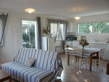 Il est totalement de plain pied. Vous trouverez dans ce gîte une pièce de vie lumineuse, 2 chambres avec salle d’eau dans chacune d’elles, à l’extérieur une terrasse avec salon de jardin et toboggan. 2 ch. (1 lit 2 places, 2 lits 1 place), salle à manger/coin-cuisine/coin-salon, 2 salles d’eau priv. pour chaque ch., wc, cheminée insert, nécessaire bébé (lit, chaise haute, porte bébé, transat, poussette), salon de jardin, barbecue, terrasse, terrain clos privatif, aire de jeux et boulodrome communs avec l’autre gîte. Chauffage électrique. Location du dimanche au dimanche. .