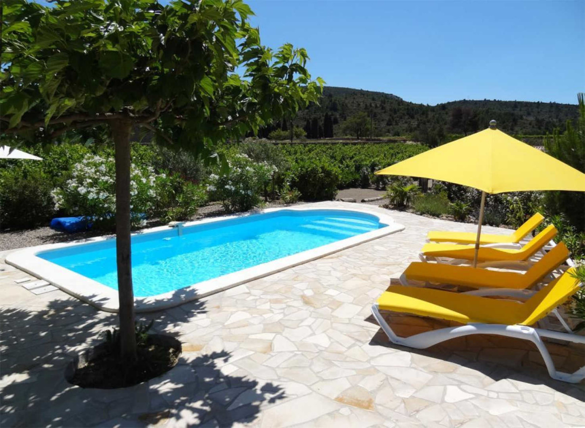 Bordé de coteaux et de vignobles il offre une vue sur les paysages méditerranéens. Un aménagement paysager de rocailles de petites haies. Piscine privative chauffée de mi-avril à octobre (4X7). Commerces à 6 km, plages à 30 min. Carignan :Gîte en rez de jardin avec 3 marches pour accéder aux chambres. Séjour-cuisine donnant sur une terrasse couverte, et un espace privatif avec mobilier de jardin et coin grillade, buanderie, 2 chambres (1 lit 160 et 2 lits 90), sanitaires privatifs attenants (douche lavabos wc). Produits d’entretiens respectueux de l’environnement fournis. Charges incluses (eau + électricité). Mise à disposition de vélos payante. Piscine équipée d’une bache de sécurité homologuée. Un seul animal accepté de 10 kg max avec accord au préalable du propriétaire. La séparation entre les villas voisines, est assurée par un talus clôturé composé d’arbres, d’arbustes, de palissades et d’osier. Lors de la réservation afin de faciliter l’organisation pensez à nous communiquer l’âge des enfants. Ménage de fin de séjour 40 € obligatoire demandés sur place parle propriétaire. Les draps sont inclus et les lits faits à l’arrivée.