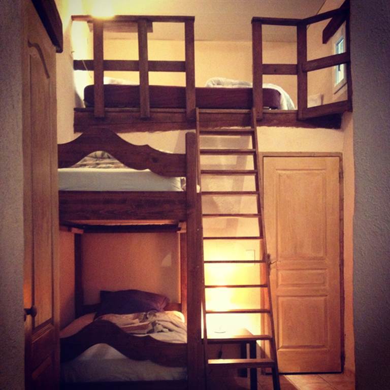 Couchages : 1 lit en 140 + 2 lits en 90 superposés + 1 matelas en 140 sur mezzanine. Lit bébé.