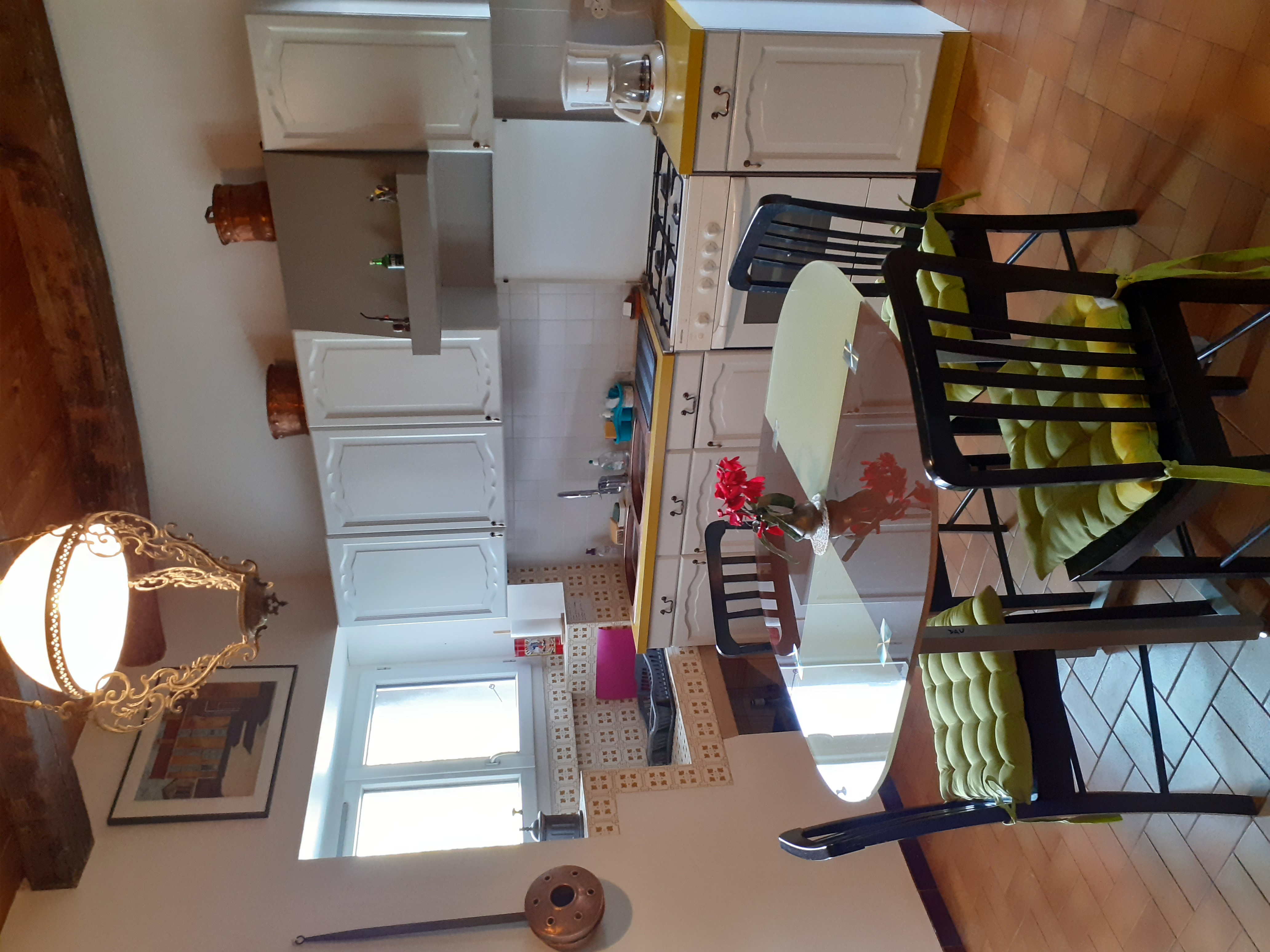 Maison ancienne restaurée, grande terrasse et terrain clos, parking. Grand salon lumineux de 45 m2 alliant style moderne et ancien, jeux de société pour petits et grand, WI-FI gratuite.