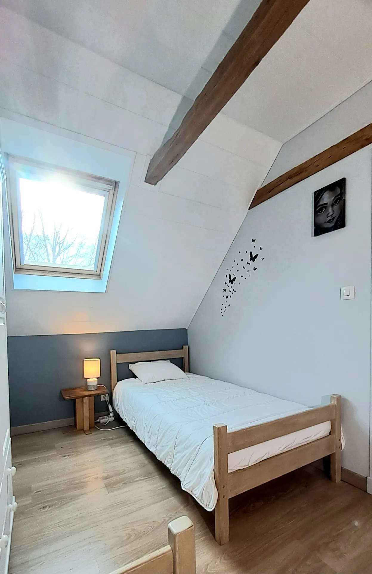 Terrain arboré, parking individuel. Spacieux, confortable, bien équipé, aucun vis-à-vis. Vaste terrasse couverte avec vue sur la campagne. Cuisine ouverte sur séjour de 30 m² donnant sur la terrasse. Chambres avec 1 lit 140×190 et cabine avec deux lits 90×190.