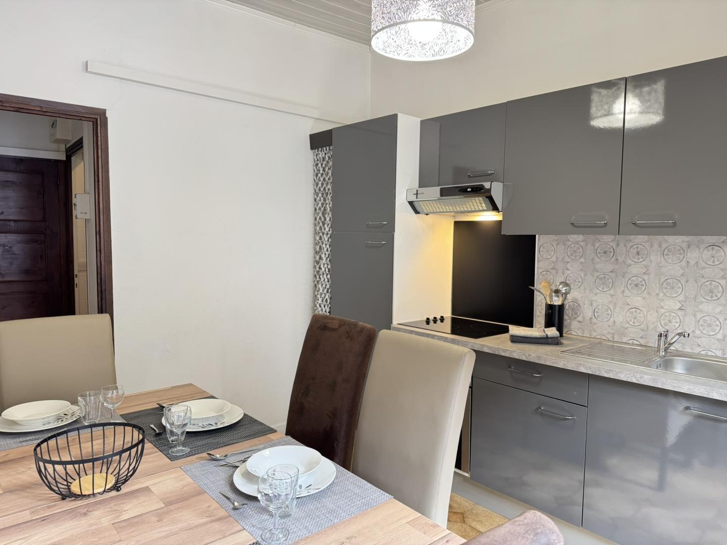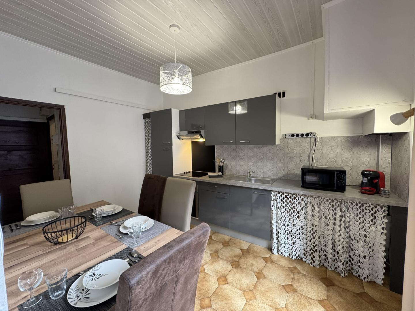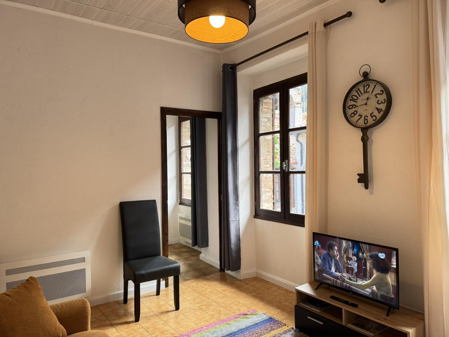 Situé à Villefranche de Conflent, cité médiévale fortifiée classée au patrimoine mondial de l’UNESCO, c’est l’endroit parfait pour se ressourcer tout en profitant des nombreuses activités et découvertes de la région. Situé dans les remparts du village, découvrez les fortifications Vauban, le Fort Libéria et visitez les grottes de Canalettes. A proximité, empruntez les nombreux sentiers de randonnées avec des vues exceptionnelles. A quelques minutes à pied du centre de Villefranche-de-Conflent, vivez une expérience inoubliable à bord du Petit Train Jaune pour une balade au cœur des Pyrénées avec des panoramas à couper le souffle. Ce gîte est situé au deuxième étage d’une bâtisse en pierre, chargée d’histoire, au cœur de la cité et se compose : – Cuisine équipée : plaque 3 foyers vitrocéramique, cafetière Tassimo, cafetière à filtre, bouilloire, grille-pain, micro-onde – Salle d’eau avec WC – Salon – Chambre 1 : 1 lit 140×190 – Chambre 2 : 1 lit 140×190 – Espace dressing pou