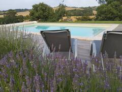 Venez vous ressourcer à la campagne dans notre gîte tout confort avec vue imprenable sur les coteaux Vous pourrez profiter de la piscine chauffée, vous détendre dans un cadre verdoyant, ou découvrir de beaux sentiers de balades passant par la maison !