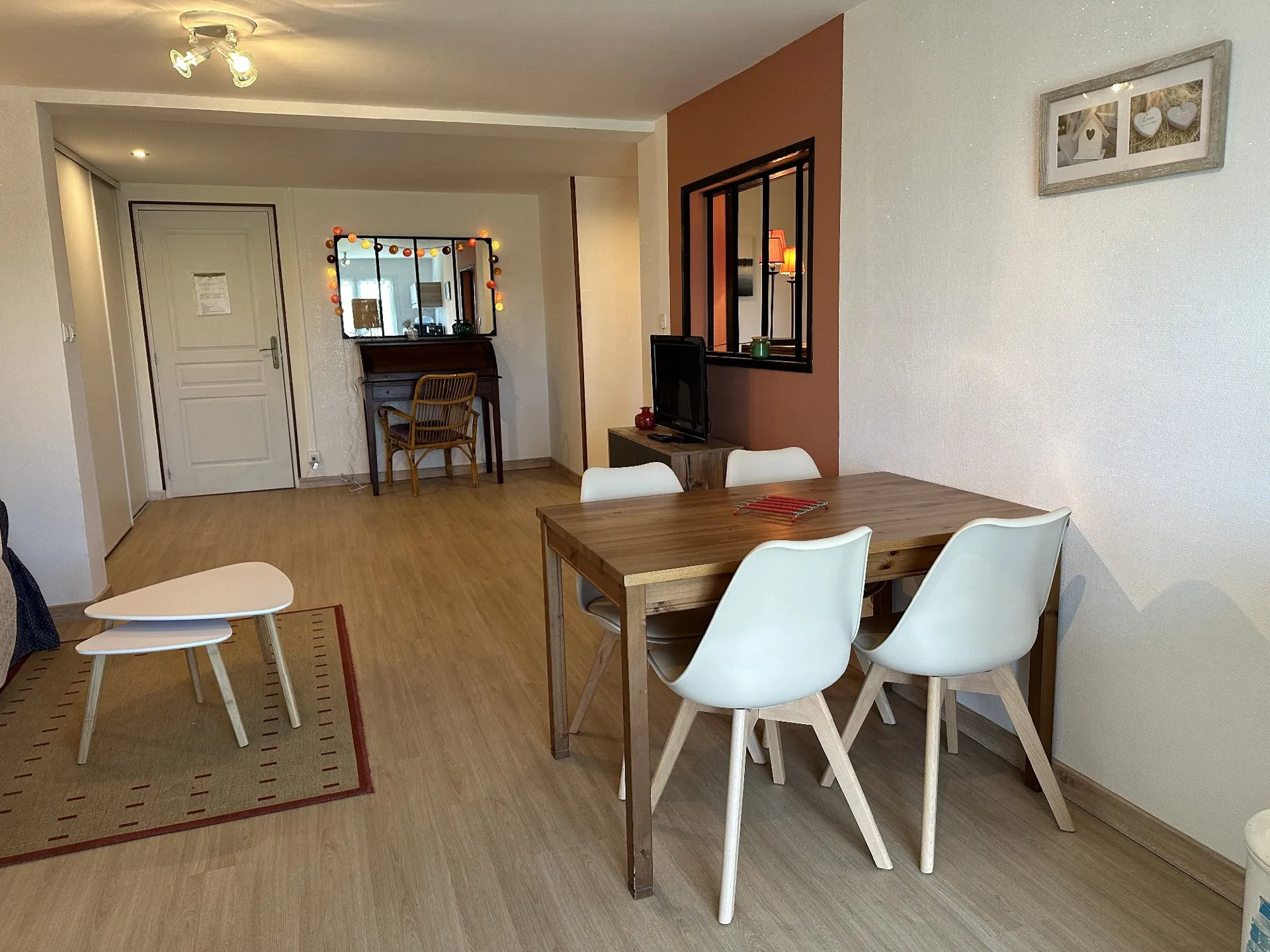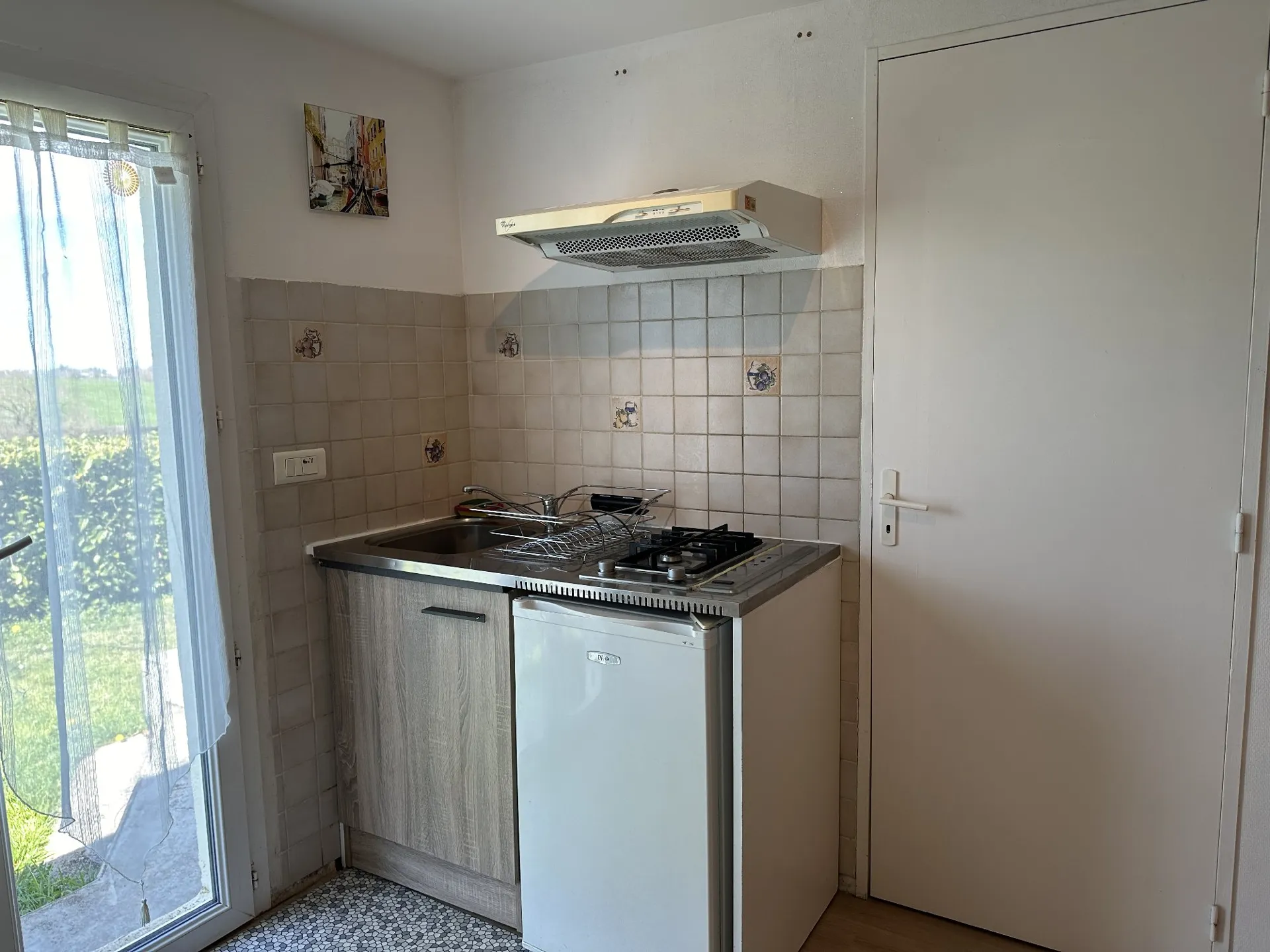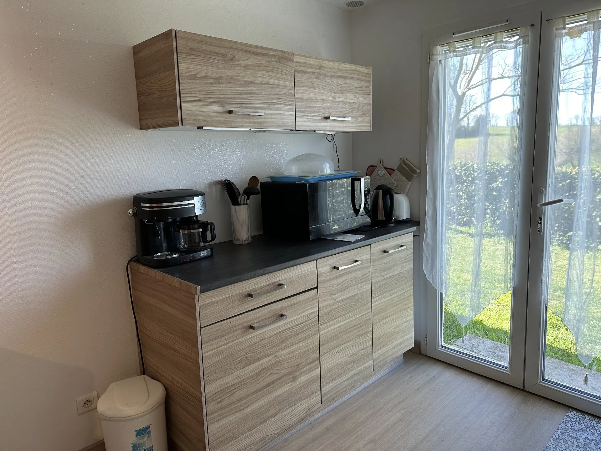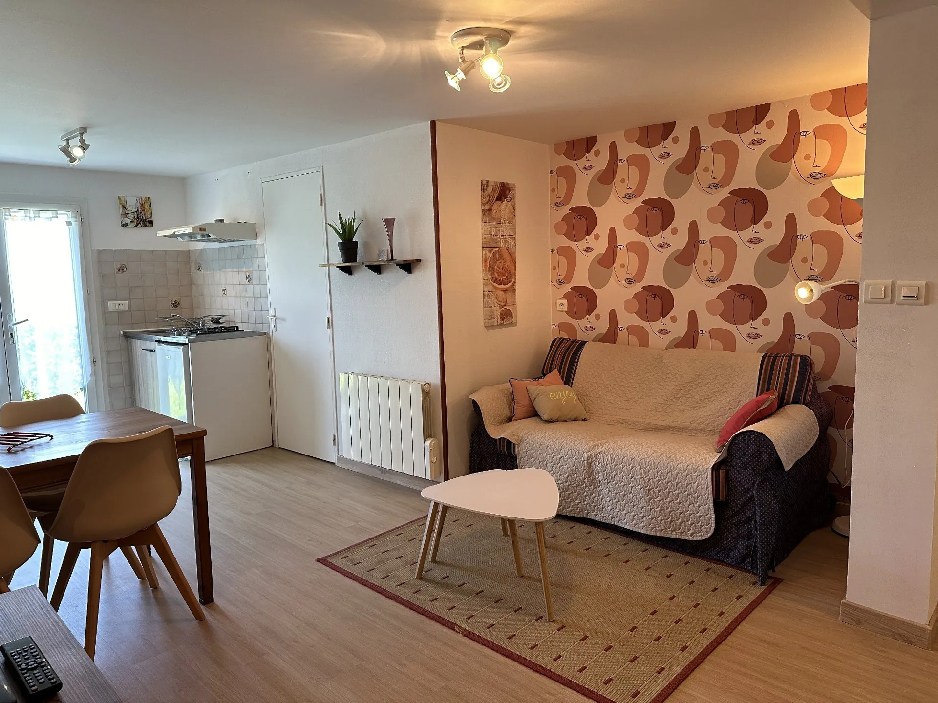 Cette location de vacances mitoyenne à la maison de la propriétaire possède sa propre entrée indépendante. Elle est implantée sur un terrain clos et possède une terrasse. La cuisine équipée d’une plaque de cuisson au gaz, d’un mini-four, d’un congélateur et d’un micro-ondes est ouverte sur le séjour (canapé convertible en 120 et télévision). La chambre de 13 m² est meublée avec un lit en 140 (literie neuve mars 2019). Lave-linge privatif. A l’extérieur : salon de jardin et barbecue avec store.