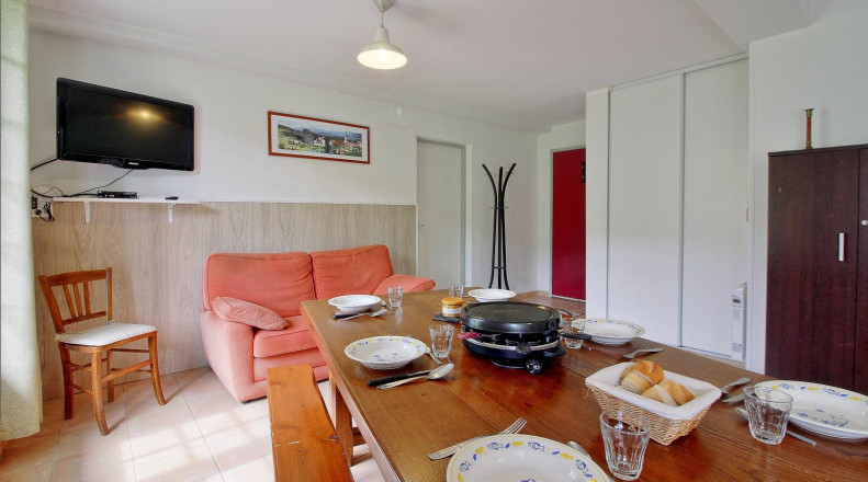 Gîte en rez de jardin de plain pied situé dans une résidence avec digicode, accès par un escalier intérieur ( niveau-1). Pièce de vie, salle d’eau avec wc, 2 chambres (1 lit superposé en 140, 1 lit superposé en 90, 1 lit 140), local pour skis, parking privatif pour 1 véhicule, chauffage électrique compris. Commerces de proximité à 6 km. Forfait curiste.Jardin privatif devant l’hébergement (rare dans une résidence). Stationnement possible devant la location (uniquement en période estivale). .