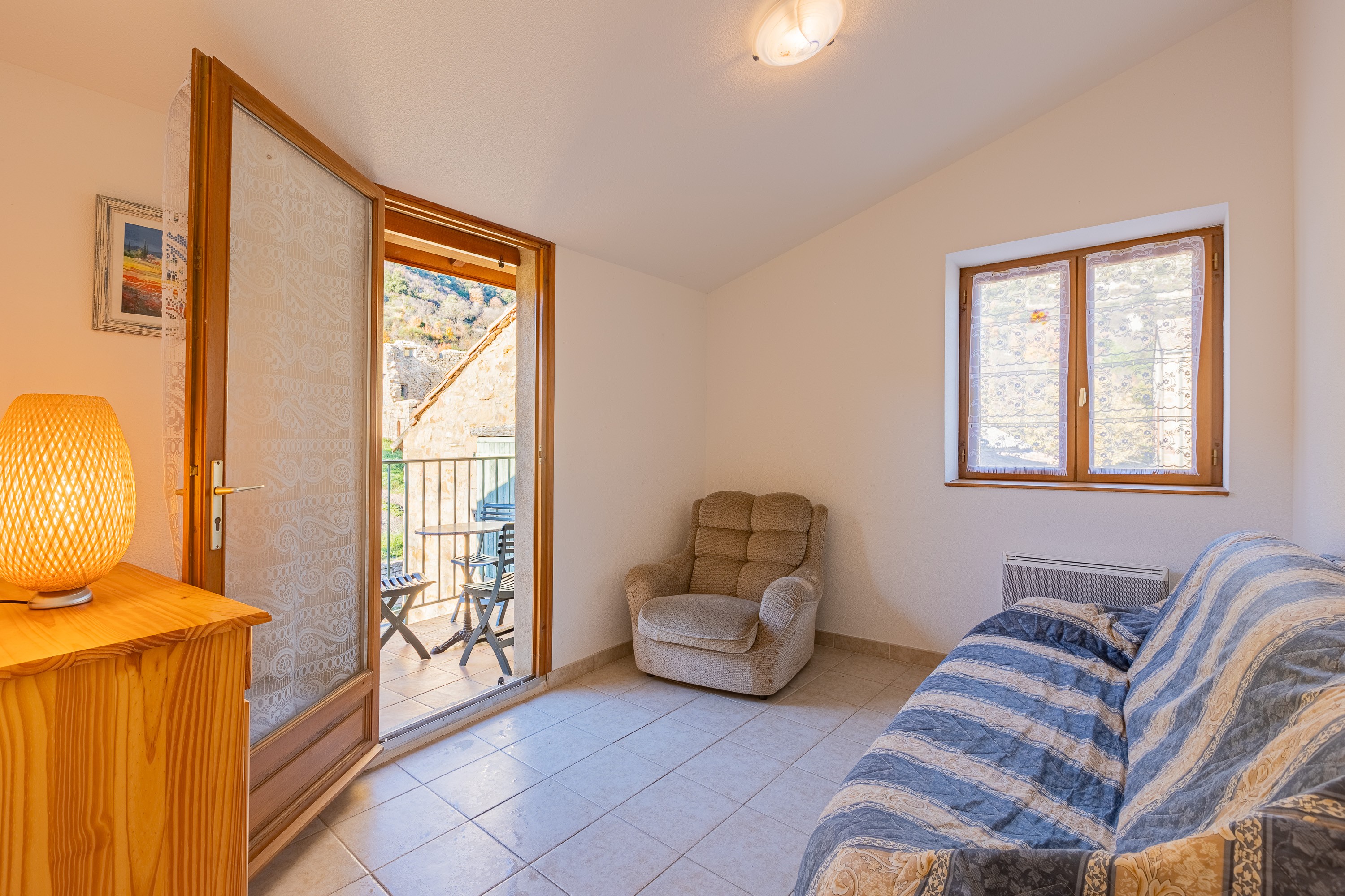 Nichée au cœur du pittoresque hameau de Dio, à proximité du Parc Naturel du Haut-Languedoc, cette maison de caractère est un ancien bâtiment de ferme en pierres de pays, entièrement rénové et aménagé sur deux niveaux. Elle vous accueille pour un séjour ressourçant, entre nature et patrimoine, dans un cadre paisible et authentique. D’une superficie de 80 m², ce gîte spacieux et lumineux peut accueillir jusqu’à 4 personnes. Au rez-de-chaussée, un coin-cuisine entièrement équipé est ouvert sur la salle à manger. Un WC indépendant complète cet espace. À l’étage, un salon chaleureux mène à une chambre avec un lit double et une autre chambre avec deux lits simples. Une salle d’eau, un WC indépendant et une mezzanine avec un canapé offrent un confort supplémentaire. L’hébergement dispose du chauffage électrique et d’une télévision. La location de draps et le ménage de fin de séjour sont possibles sur demande. L’extérieur offre une terrasse au premier étage de 6 m² avec un salon de jardin, un barbecue pour profiter des repas en plein air, ainsi qu’un abri couvert clos de 30 m². La situation privilégiée du gîte permet de découvrir le Château de Dio, le Lac du Salagou et ses paysages rougeoyants, le Cirque de Mourèze et le village de Villeneuvette, ancienne manufacture royale fondée par Colbert. Les amateurs de nature pourront partir en randonnée dans le Massif du Haut-Languedoc, tandis que les marchés de Lodève et Clermont-l’Hérault raviront les amateurs de produits locaux. Réservez dès maintenant votre séjour à Dio et laissez-vous séduire par l’authenticité et la beauté de cette région unique !