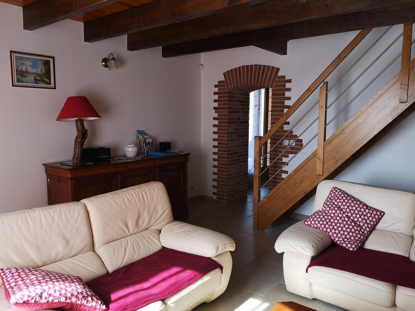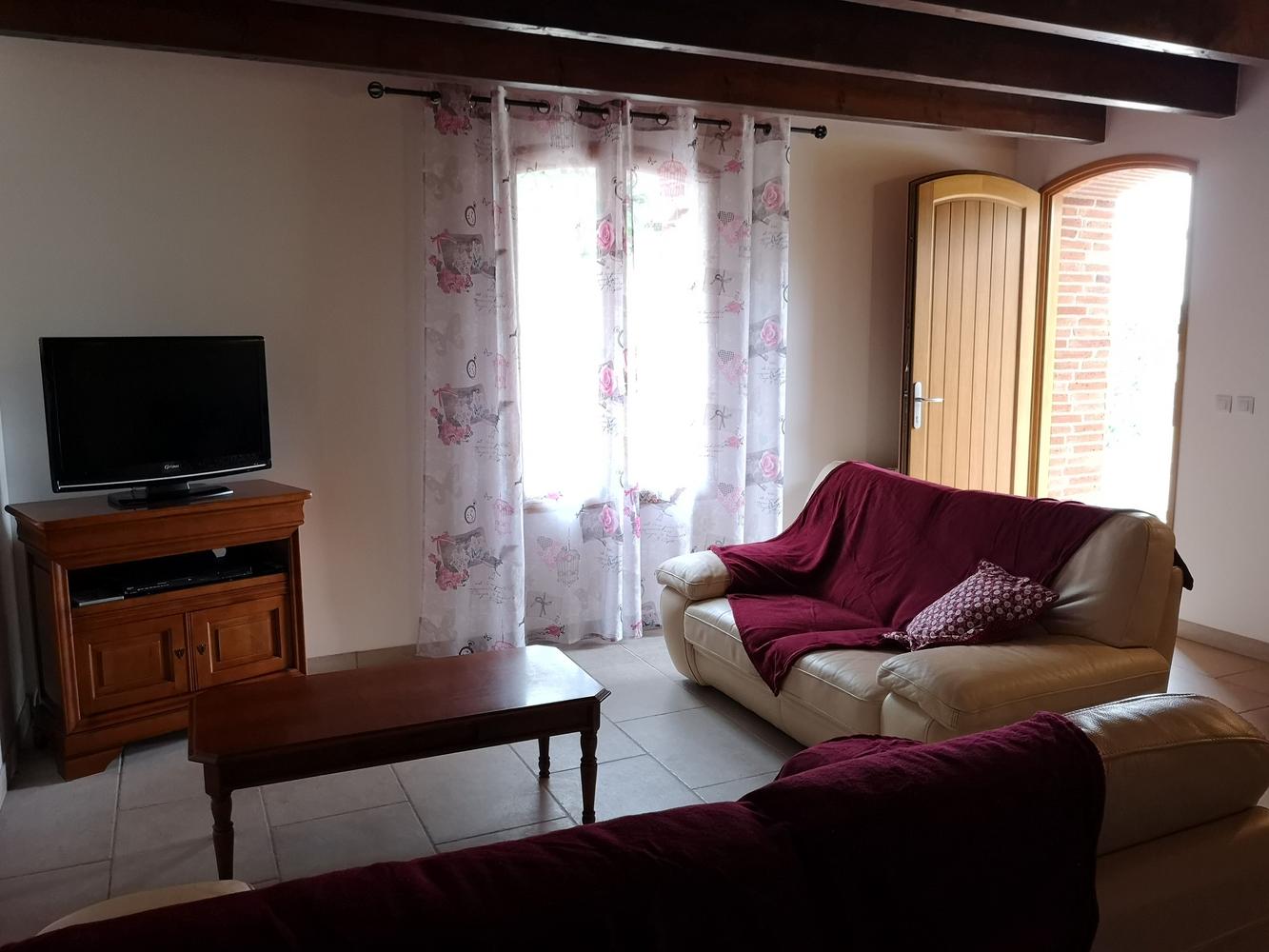Un agréable salon avec deux canapés ,Tv écran plat, lecteur DVD, jeux de société, livres sont à votre disposition.