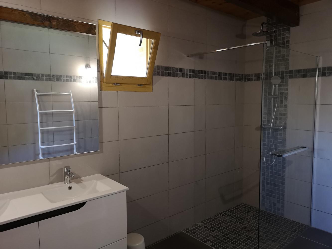 Vous saurez apprécier le confort de la salle d’eau avec sa douche à l’italienne, meuble double vasque et rangement.