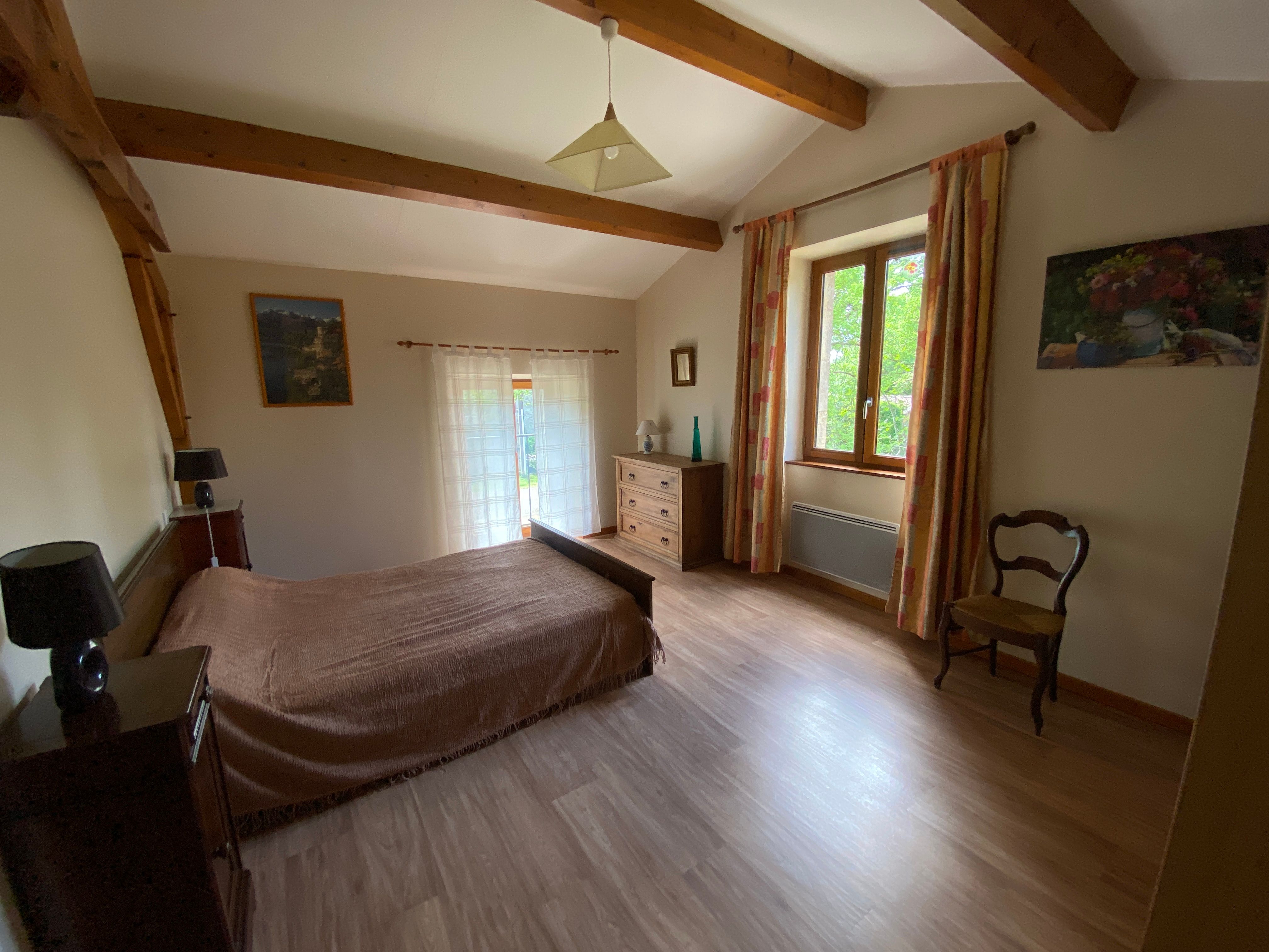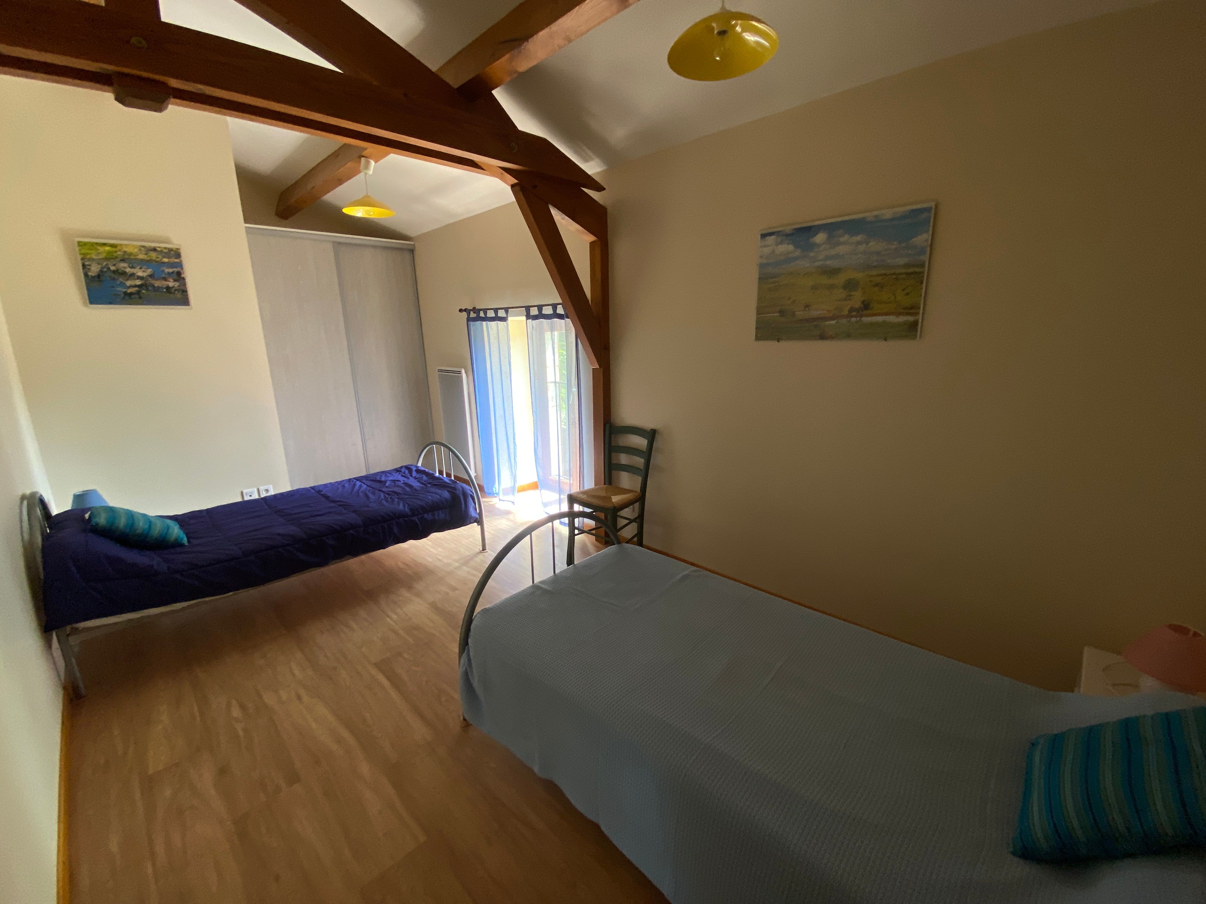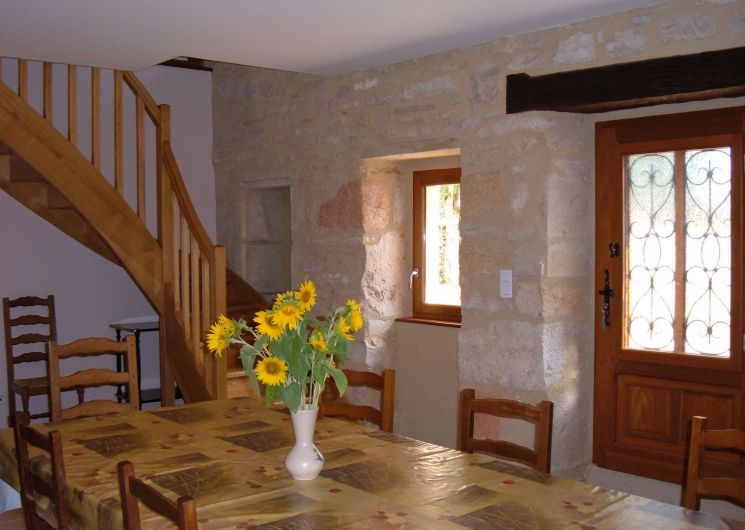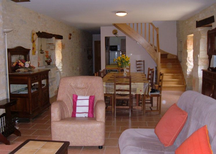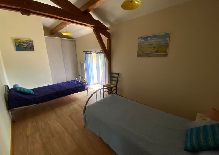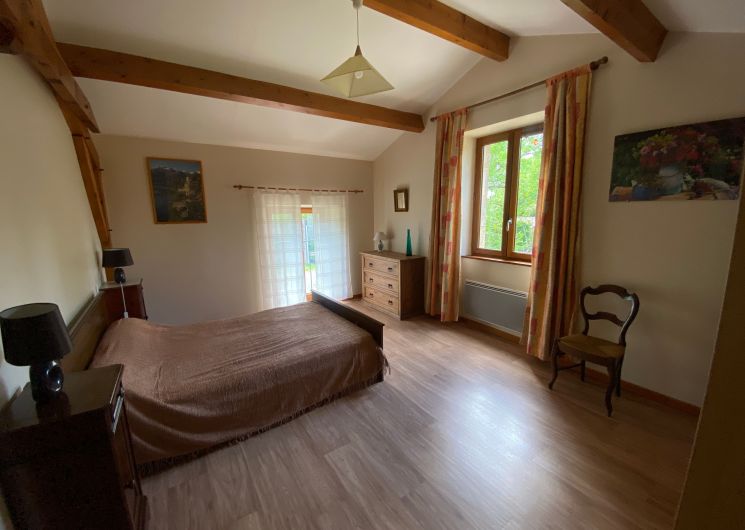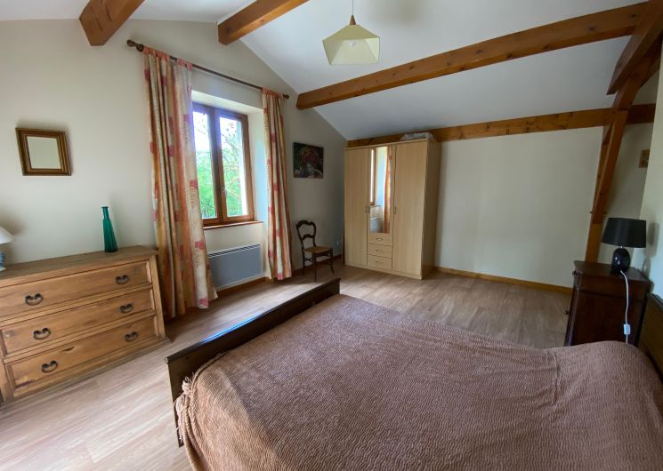 En campagne, dans un petit hameau, gîte indépendant. Le logement comprend au rez-de-chaussée : grand séjour salon (canapé, TV), cuisine intégrée (LV, micro-ondes), wc indépendant, cellier avec LL et une cabine douche. A l’étage : 1 ch (2 lits 90), 2 ch (1 lit 140 chacune), salle de bain avec wc. Abri de jardin (12m2). Jardin privé clos (1200m2), cour (100 m2) avec salon de jardin et barbecue. Possibilité de stationnement dans l’enclos. Accès internet par WIFI.
