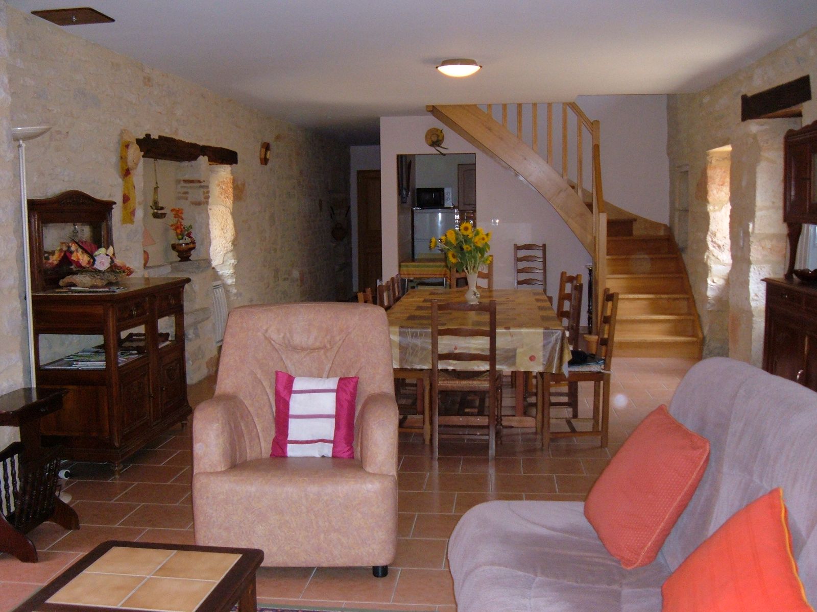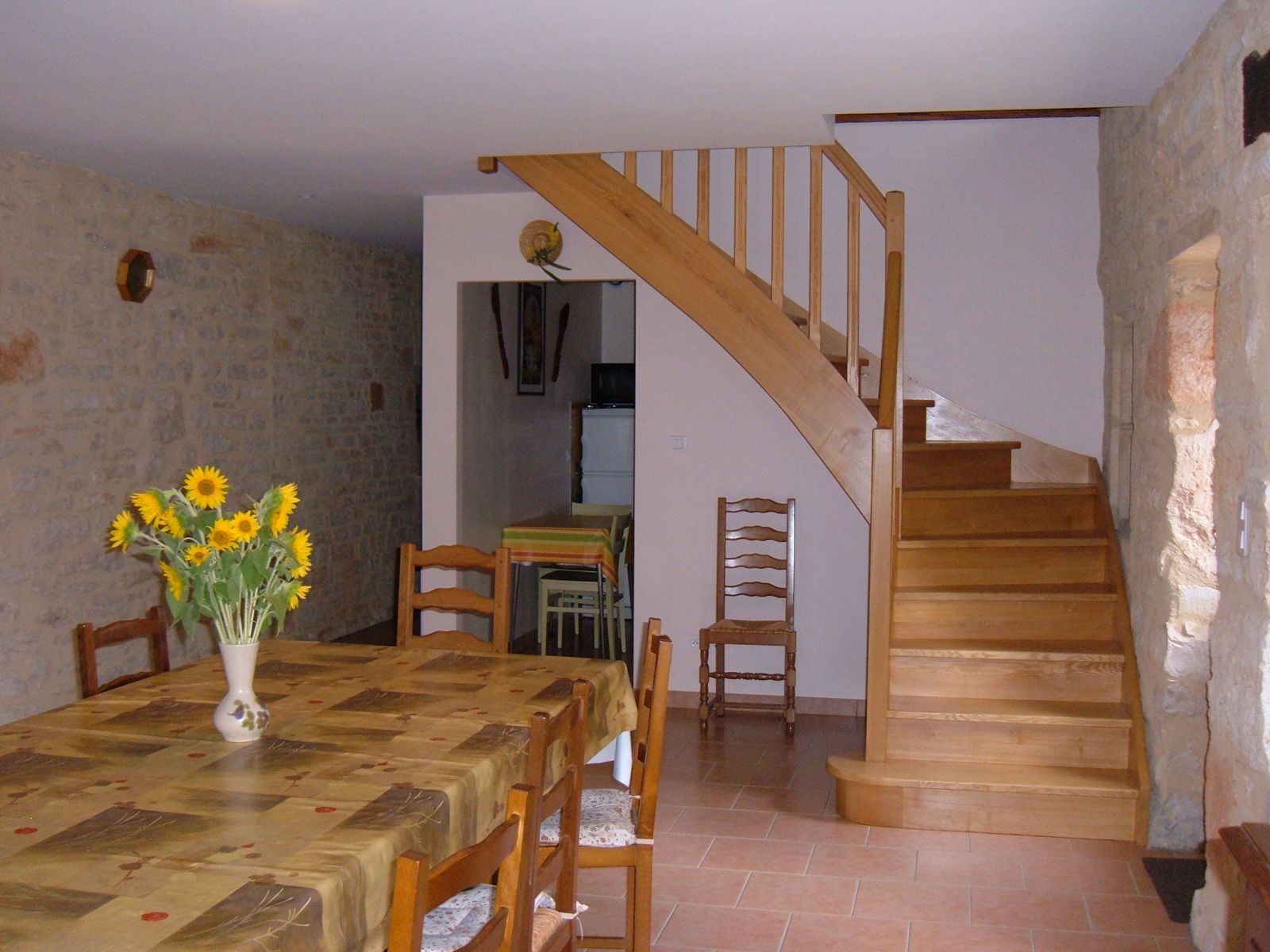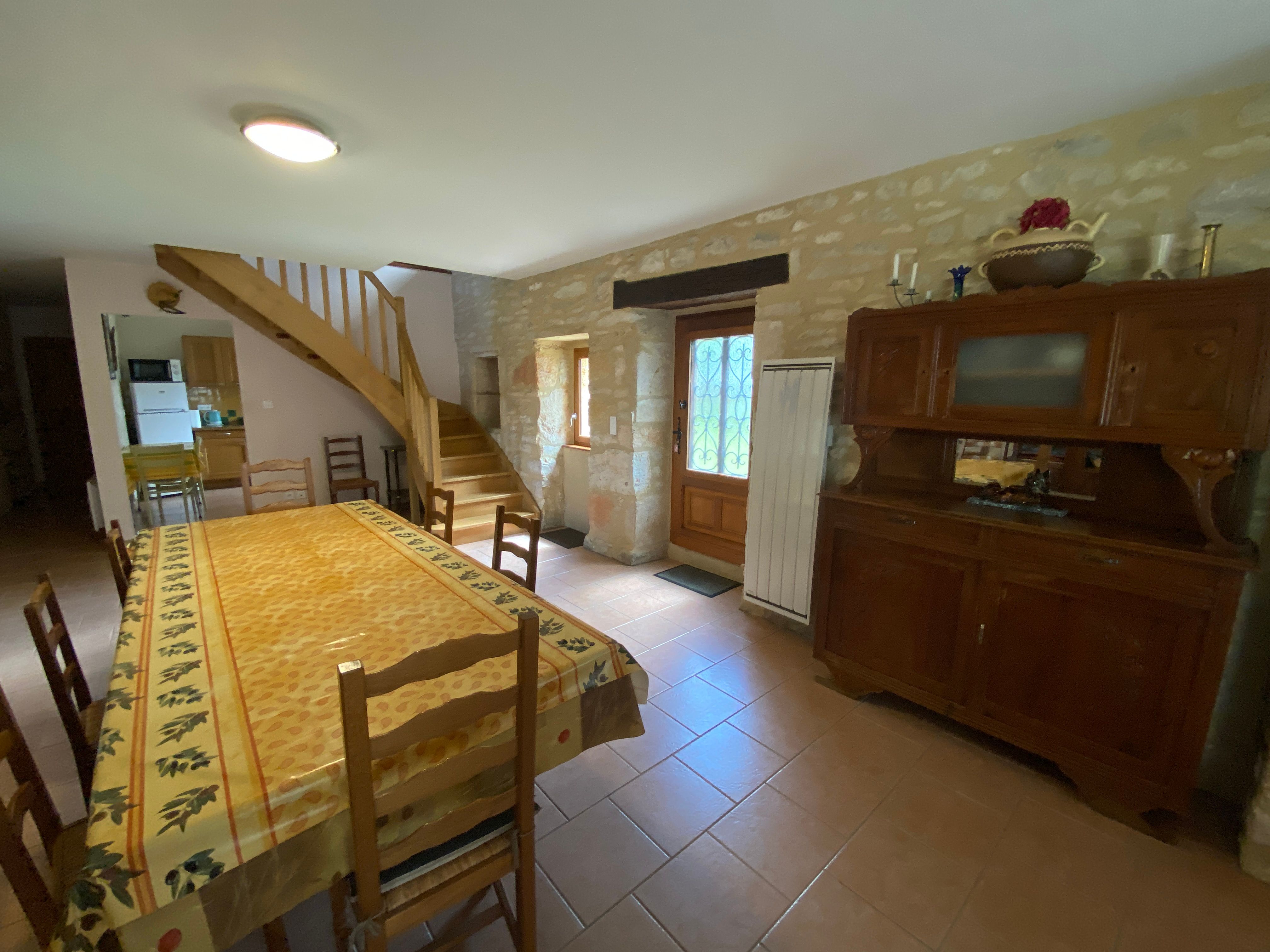 En campagne, dans un petit hameau, gîte indépendant. Le logement comprend au rez-de-chaussée : grand séjour salon (canapé, TV), cuisine intégrée (LV, micro-ondes), wc indépendant, cellier avec LL et une cabine douche. A l’étage : 1 ch (2 lits 90), 2 ch (1 lit 140 chacune), salle de bain avec wc. Abri de jardin (12m2). Jardin privé clos (1200m2), cour (100 m2) avec salon de jardin et barbecue. Possibilité de stationnement dans l’enclos. Accès internet par WIFI.